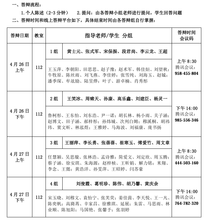 同学们请到自己导师所在的答辩组按顺序参加答辩