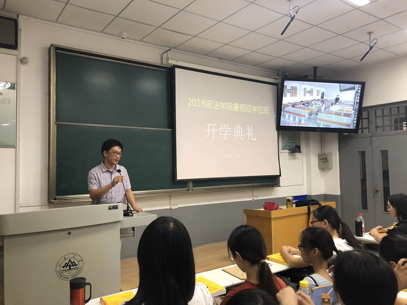 典礼由陈老师致开幕词,李长勇老师作为教师代表发言,李老师也是暑期班宪法学课程的任课教师。首先,他对来参加暑期双学位课程的学生们表达了欢迎,认为这种在酷暑下努力学习的精神是值得表扬的;随后,他期望同学们在接下来的学习生涯中能够保持高度的学习兴趣,努力投入于法律实践并逐步培养专业的法律思维,从而更好地分析并解决现实生活中的种种问题;最后,他祝愿同学们不论结果如何,一定要在学习的过程中有所收获,感受到这一阶段的幸福与愉悦。