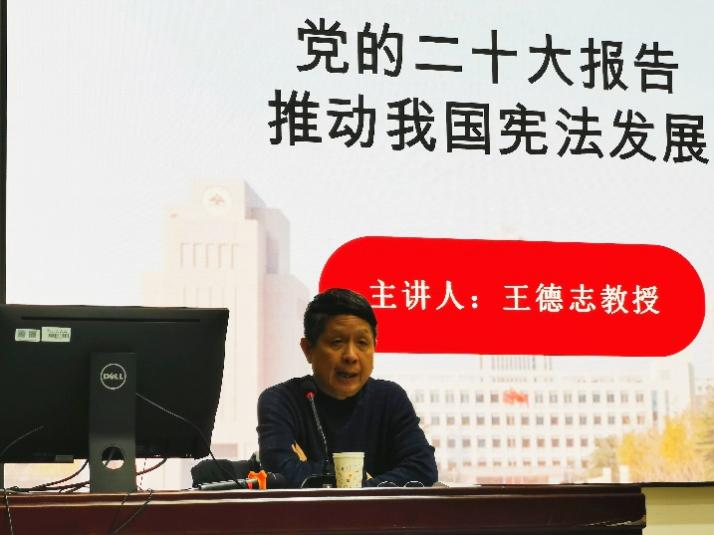 另外,第一支部党员教师还注重将党的二十大精神带进课堂,大力提倡原典原著学习,为学生开展相关主题讲座和学术研讨活动,从学理上加深对二十大精神、习近平法治思想的认识。作为taptap点点体育举办的《学习宣传贯彻党的二十大精神培养卓越法治人才系列讲座》之一,谢鹏程教授于2022年11月1日以《习近平法治思想指导下的中国法治和法学》为题,为taptap点点体育师生做了主题讲座。王德志教授于2022年11月23日以《共同富裕的权利逻辑》为题、于12月4日以《党的二十大报告推动我国宪法发展》为题,为taptap点点体育青岛校区师生作主题讲座。陈伟助理研究员于2022年12月2日组织读书会,与同学们一起研习肖蔚云先生著作《我国现行宪法的诞生》,以纪念八二宪法公布施行四十周年,感悟宪法的时代精神,聆听宪法的“脉搏跳动”,加深对二十大报告中“加强宪法实施和监督”要求的理解。