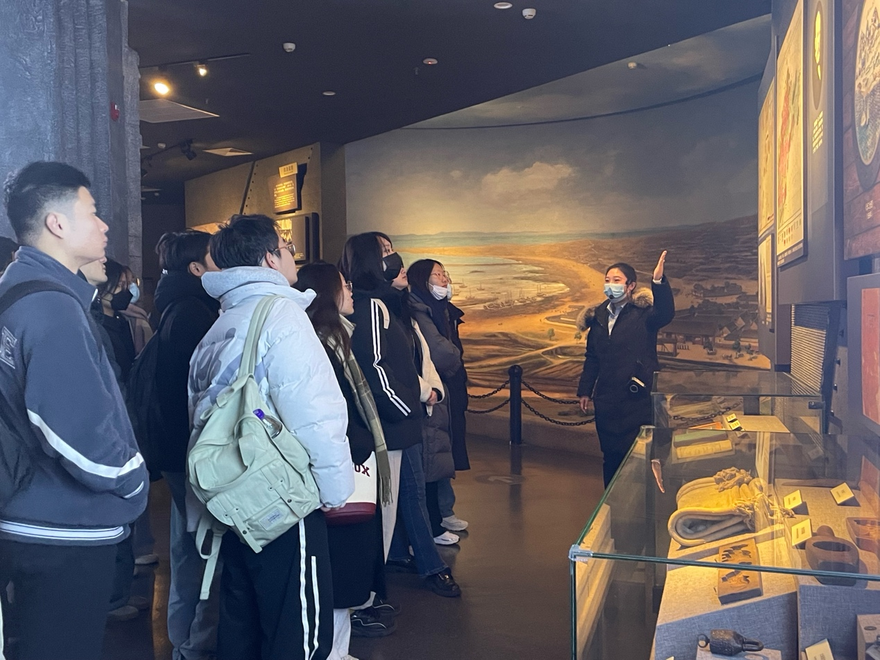 上午,同学们在讲解员的带领之下进入青岛一战遗址博物馆,先后参观了“德占青岛”“日德战争”“苦难归程”三个展区,同学们认真地听解员讲述那段屈辱的历史,仔细地观看记载那段历史的照片、画像、浮雕、视频等。沉重的历史让同学们悲痛,也激发了同学们学习专业知识、建设祖国的决心。