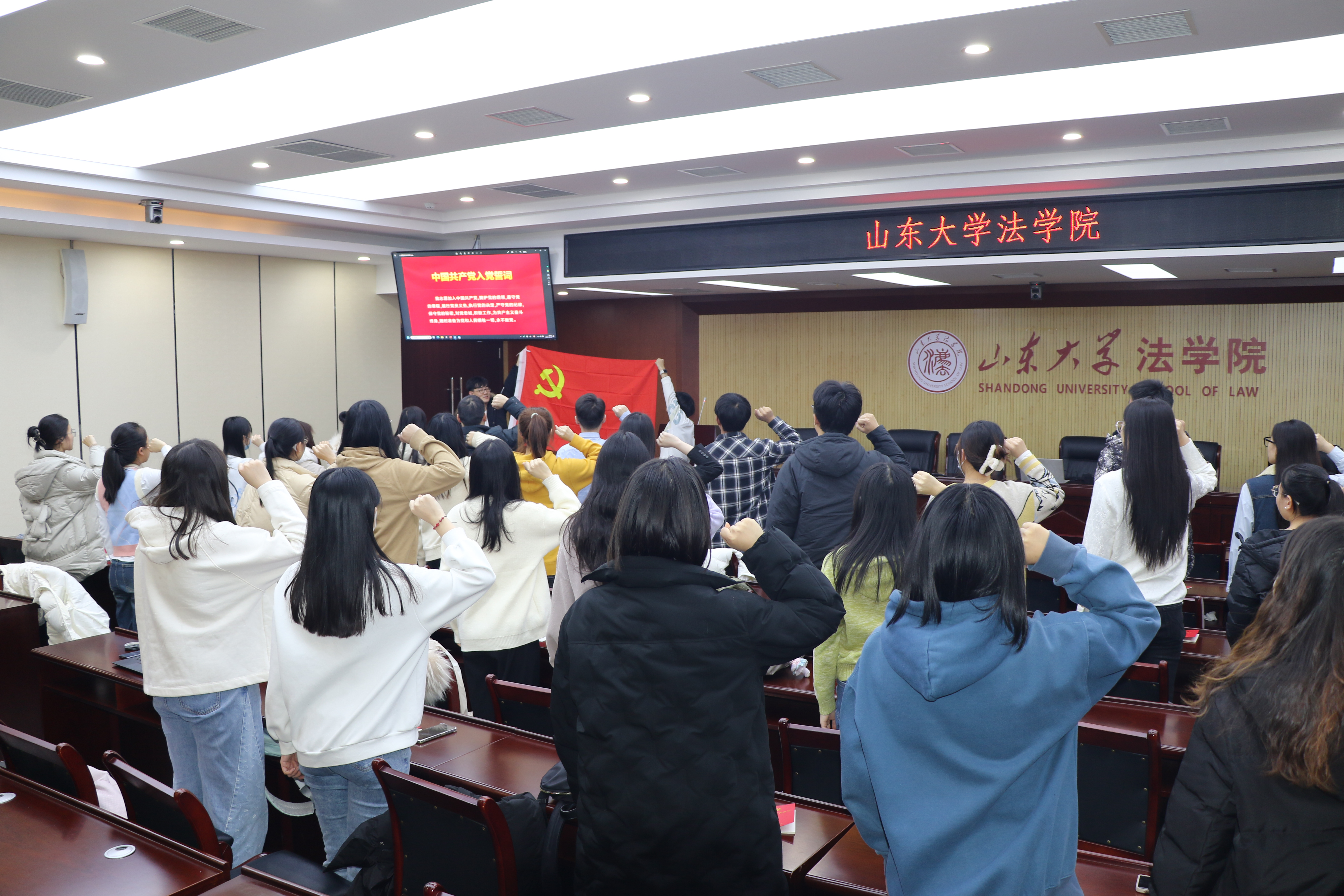 宣誓仪式在雄壮的《国际歌》中拉开序幕。在领誓人邵勇的带领下,全体党员面对党旗,举起右拳,庄严宣誓:“我志愿加入中国共产党,拥护党的纲领,遵守党的章程,履行党员义务,执行党的决定,严守党的纪律,保守党的秘密,对党忠诚,积极工作,为共产主义奋斗终身,随时准备为党和人民牺牲一切,永不叛党。”铮铮誓言,拳拳红心,铿锵有力的话语表达了他们对党的深厚感情和为党的事业奋斗终身的决心。