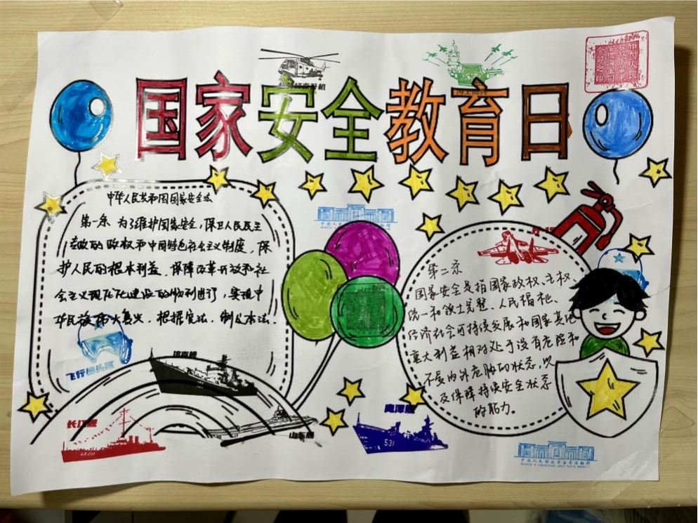 在海军博物馆,师生们先后参观了第一展厅——社会主义革命和建设时期、第二展厅——改革开放和社会主义现代化建设新时期、第三、四展厅——社会主义新时代。全景式的展现让同学们深入了解了人民海军从创建到发展,从浅蓝走向深蓝的光辉历程,人民海军伟大的革命、战斗意志和爱党、爱国的光荣传统深入人心。参观期间,部分同学还参与了博物馆举办的国家安全教育日手抄报绘画活动,真切表达自己的爱国热情。
