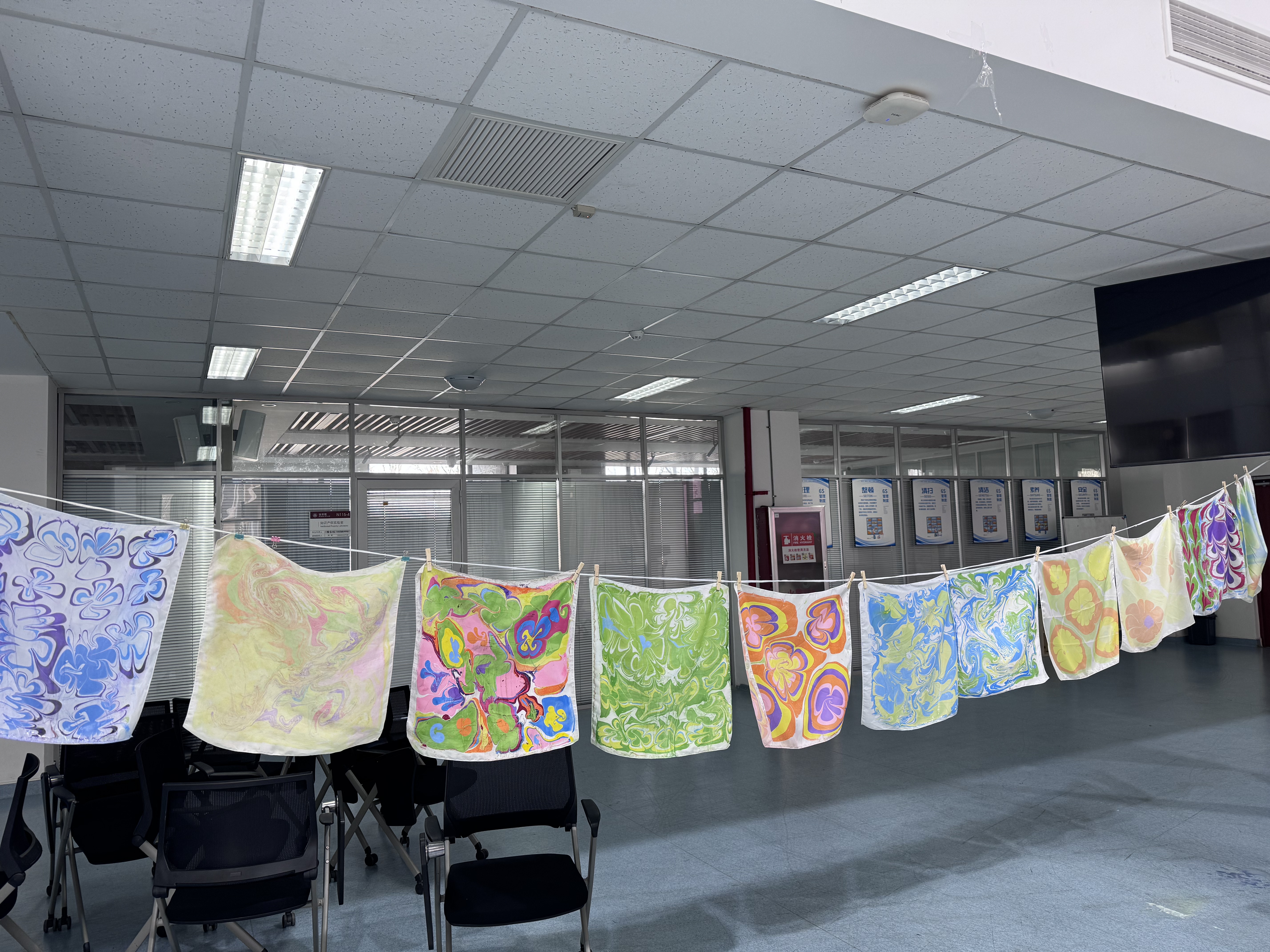传统文化体验环节,支部创新开展水拓丝巾制作实践活动。参与成员充分发挥创意,将传统技艺与现代审美相结合,通过调配色彩、设计图案,创作出各具特色的水拓丝巾作品。这一环节不仅让党员们亲身体验了非物质文化遗产的魅力,更通过艺术创作表达了对美好生活的向往和追求,实现了党性教育与文化传承的双重提升。