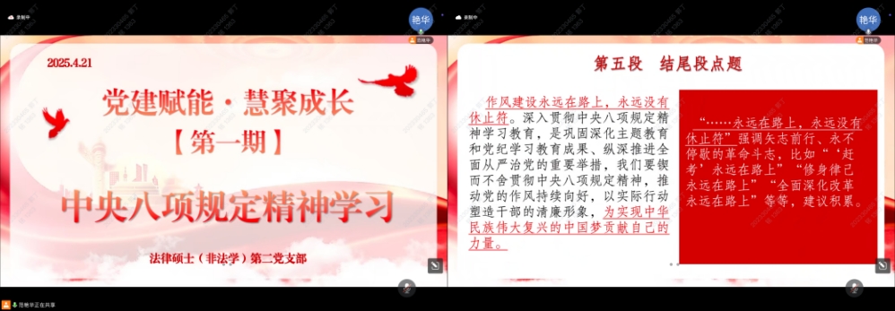 党建赋能·汇聚成长 | 法律硕士(非法学)第二党支部开展深入贯彻中央八项规定精神学习教育