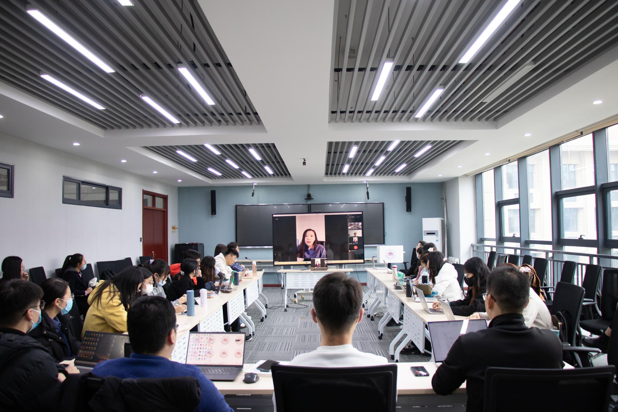 康鑫首先回顾了自己在研究生阶段从事学生工作和在律所实习的经历,启发同学们以明确的职业目标为导向,有针对性地进行实习与探索,不断发掘自身兴趣与潜力。随后,康鑫围绕中央选调生的选拔条件、选拔流程、备考方法、面试技巧等方面展开了详细介绍,并分享了入职最高人民法院及基层挂职的工作经历,展现了选调生扎根基层的青春力量。她激励同学们在平凡工作中保持学习,在与群众相处中担当使命。