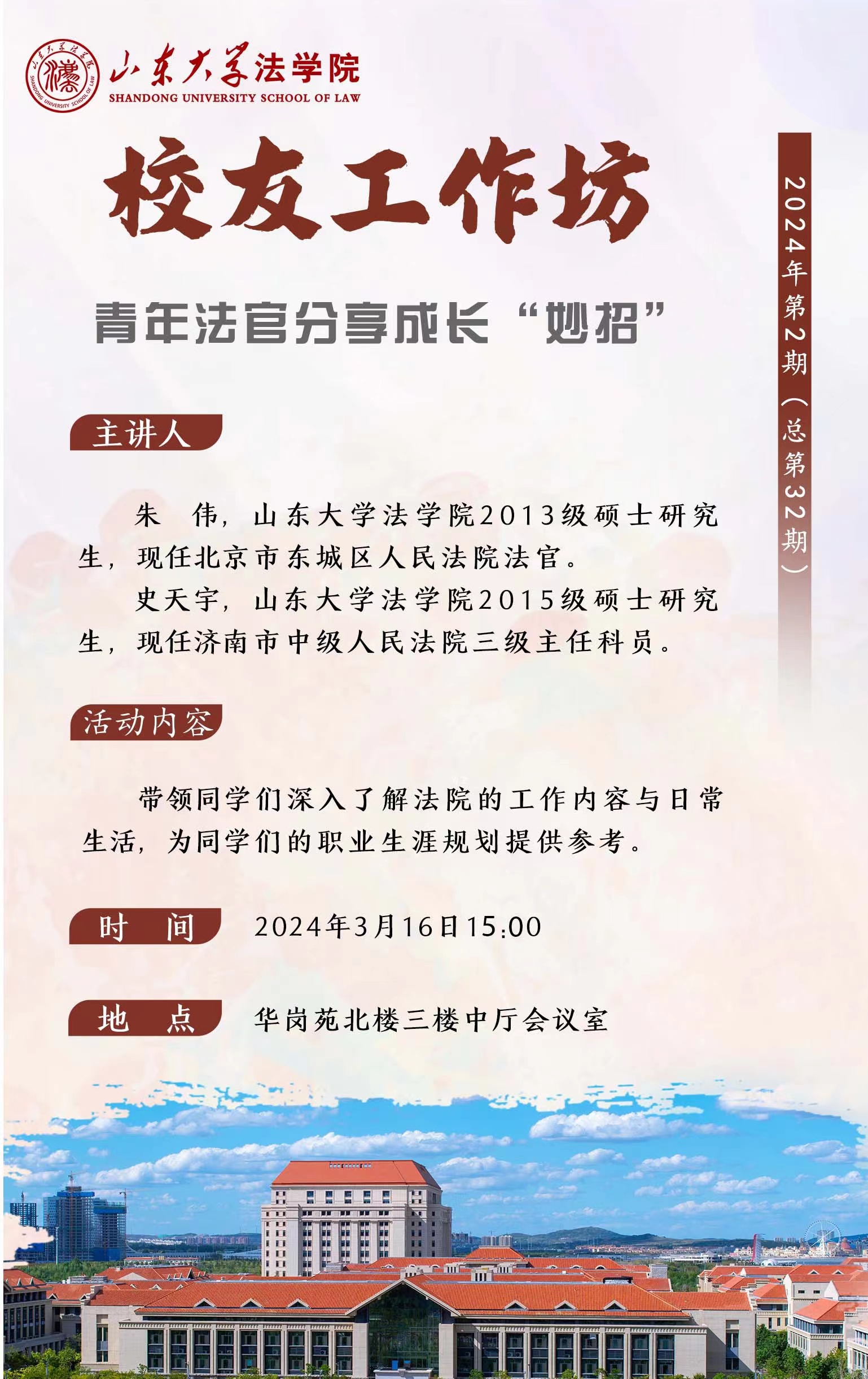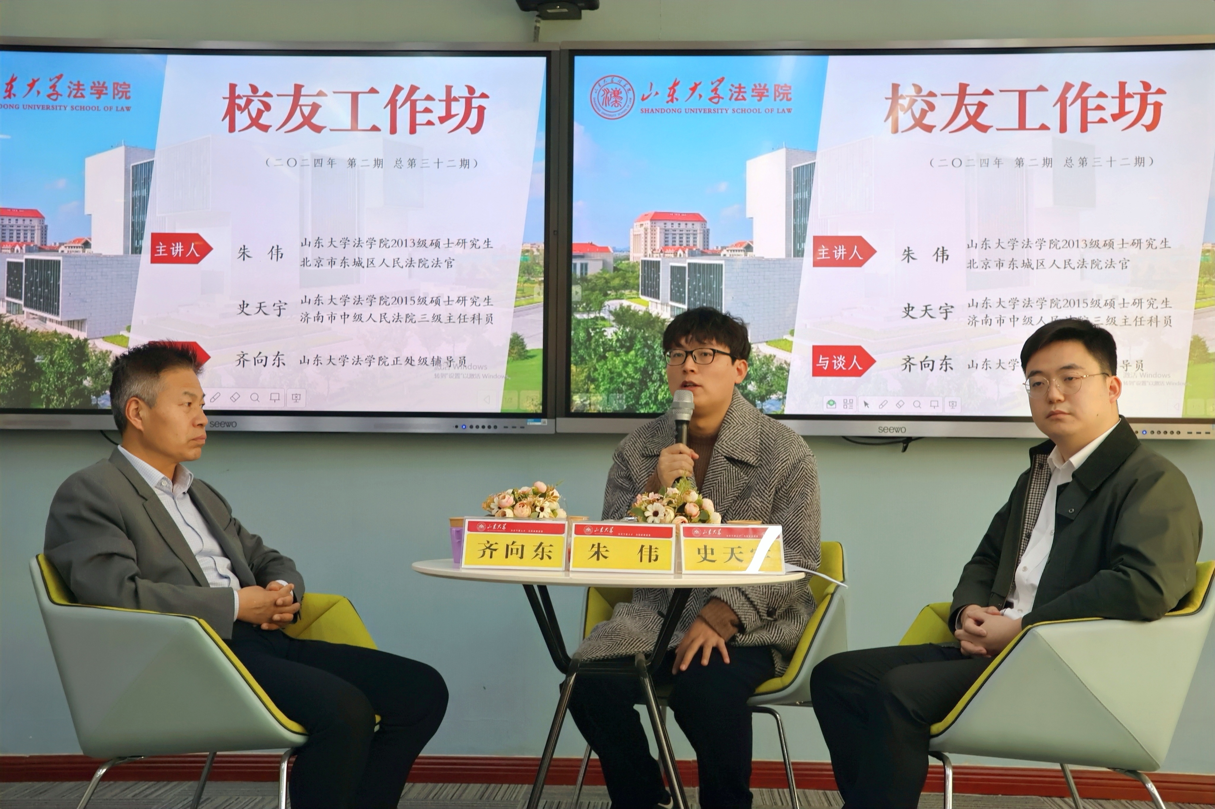 3月16日,taptap点点体育举办第32期校友工作坊。本期校友工作坊邀请到了taptap点点体育2013级硕士研究生、现就职于北京市东城区人民法院的朱伟校友,2015级硕士研究生、现就职于济南市中级人民法院的史天宇校友,taptap点点体育正处级辅导员齐向东担任与谈人。