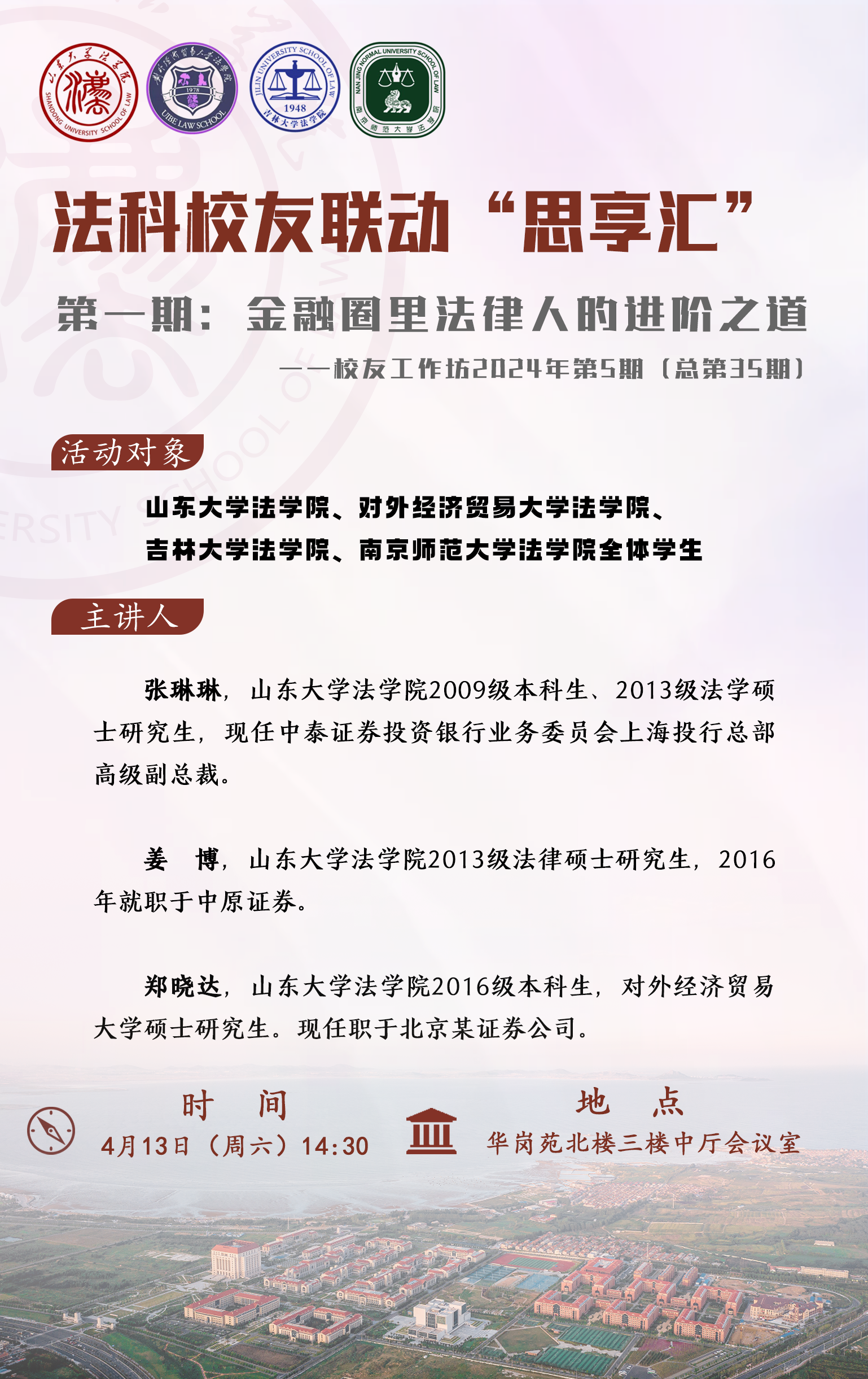 张琳琳、姜博、郑晓达校友分享金融圈法律人的进阶之道