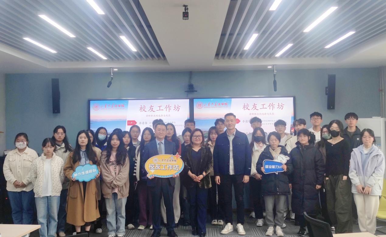 两位校友以“律师职业的选择与成长”为题,从求职历程、工作经验等方面进行分享。李清华结合自身求职经历,建议同学们要明确职业规划,敢于宣传自己,把握求职机会,同时强调工作中应具备责任感,注重个人能力的提升。赵新辰鼓励同学们在职业选择时要考虑自身专业、个人性格等多方面因素,切实了解目标职业的真实状况,坚定自身职业信念,同时提醒同学们在任何工作岗位上都要保持学习态度。