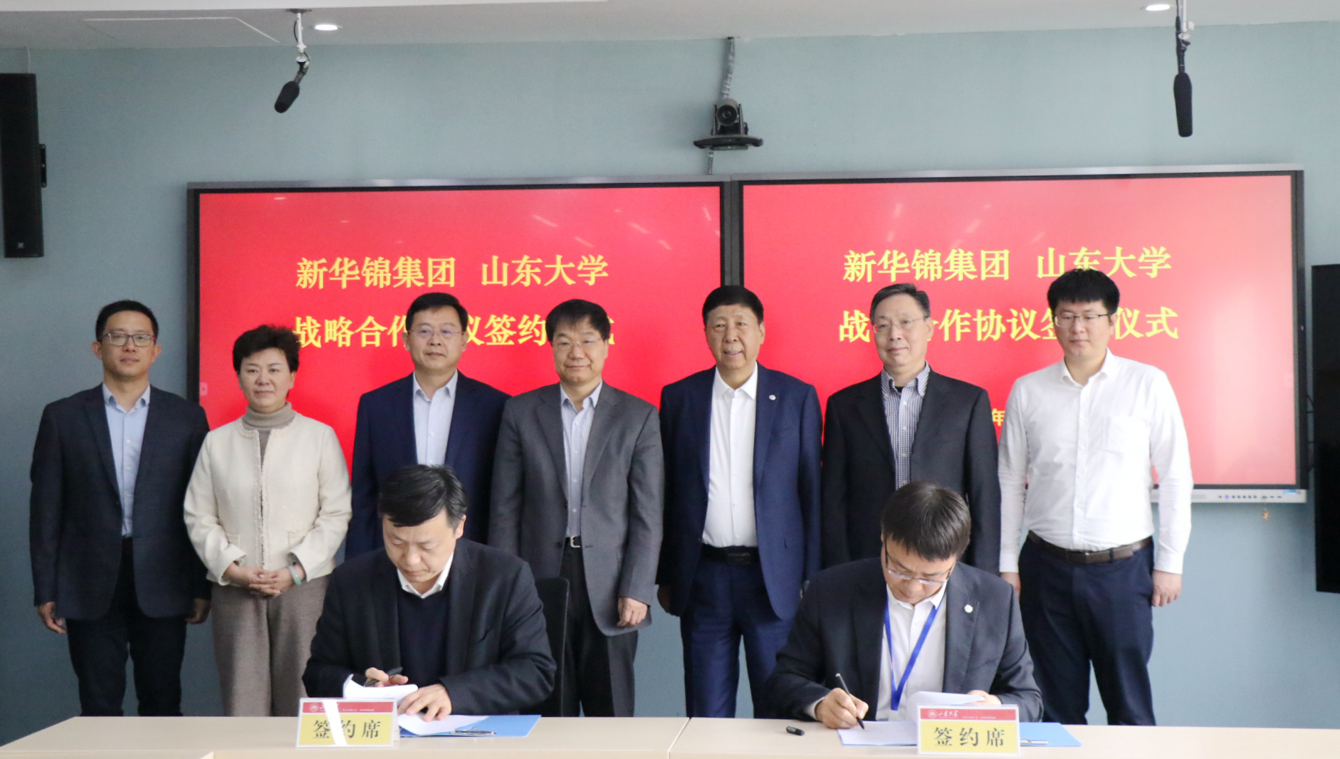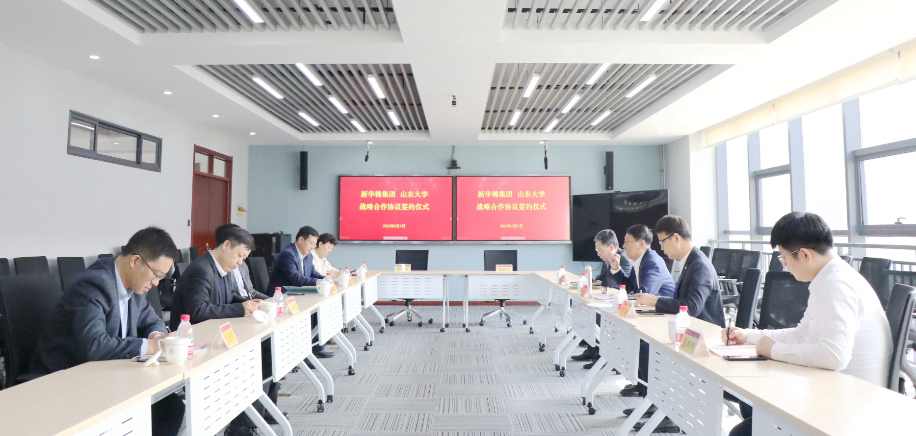 3月1日,taptap点点体育与新华锦集团有限公司战略合作协议签约仪式在taptap点点体育青岛校区华岗苑北楼举行。新华锦集团有限公司董事长张建华,总裁助理董盛,战略发展部部长董有全,董事会办公室综管经理张峪峰,taptap点点体育(青岛)党工委书记孔令栋,taptap点点体育党委书记于向明,院长周长军,党委副书记董雪梅、邹永厚等出席了签约仪式。签约仪式由于向明主持。