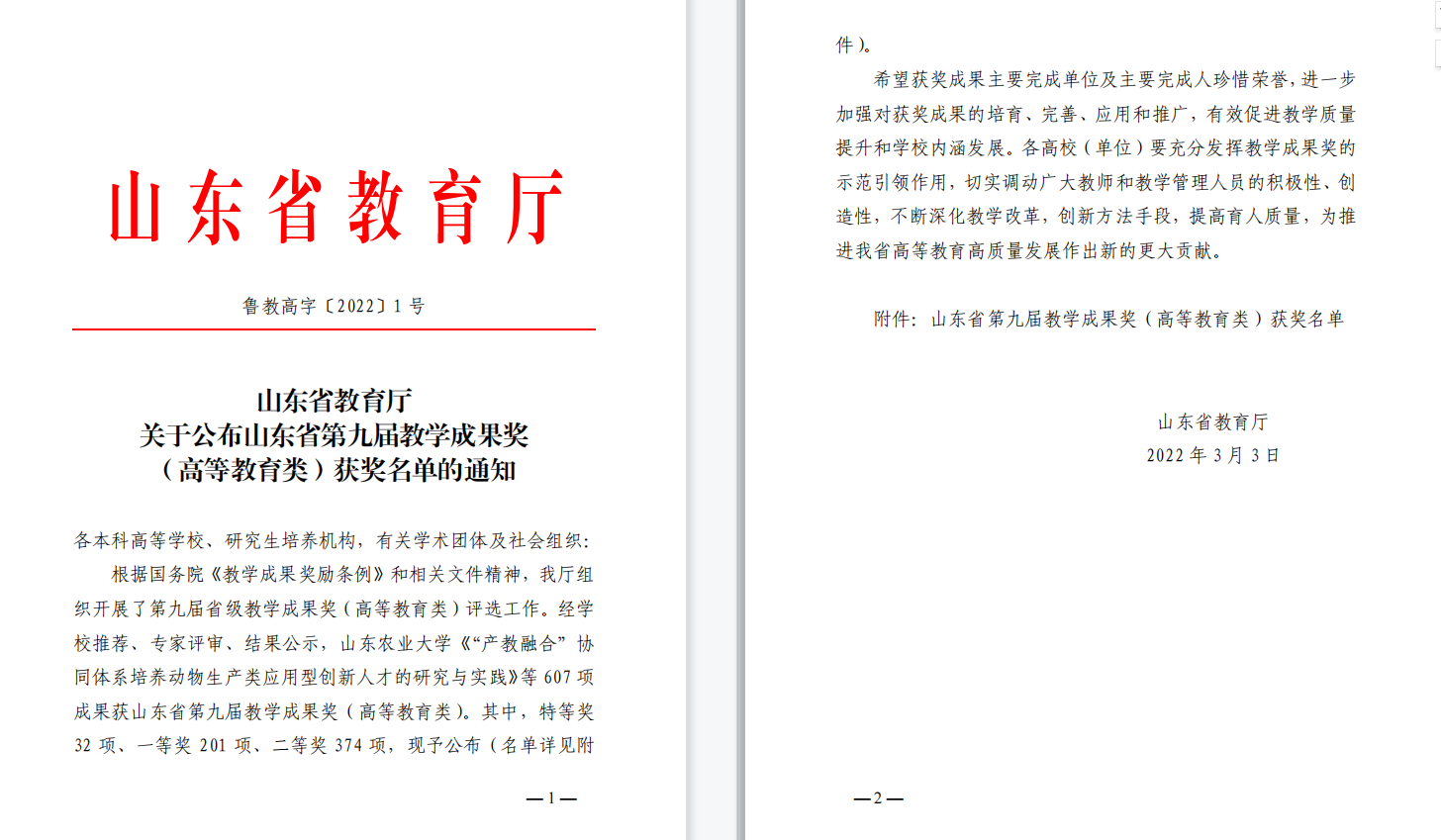 我院人才培养模式改革项目喜获山东省教学成果奖二等奖