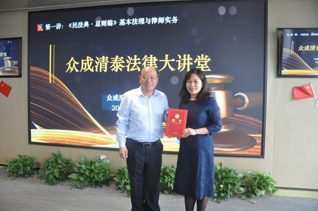 为提高律师业务培训质量,众成清泰律法研究院从2022年开启“众成清泰法律大讲堂”。“众成清泰法律大讲堂”将持续、不定期邀请知名教授、专家作为主讲人,为众成清泰总分所全体律师拓展法律视野、分享学术前沿、热点资讯,讲解法律实务疑难问题。