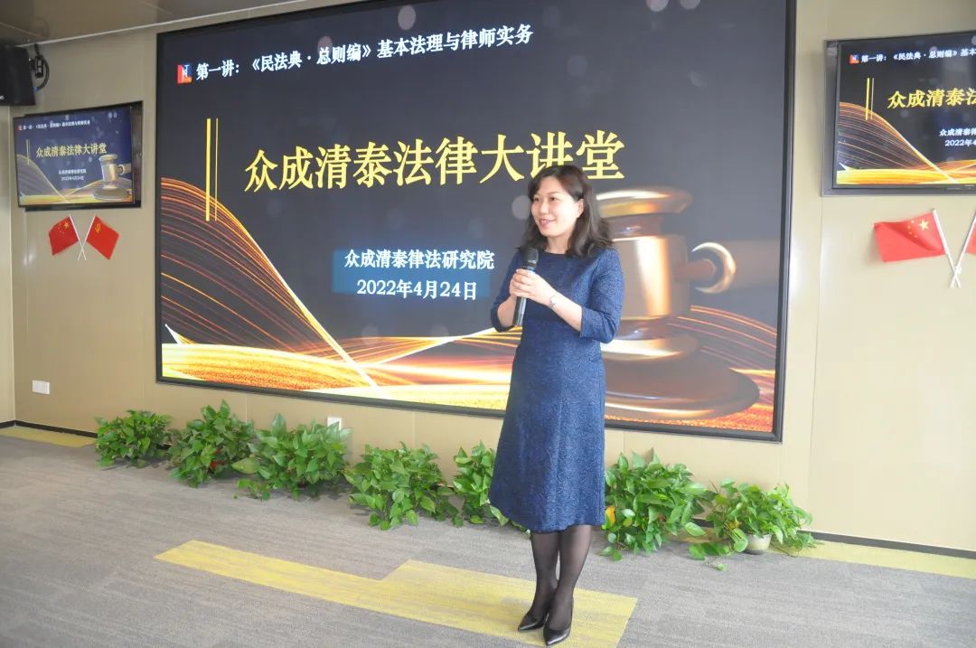 2022年4月24日上午,众成清泰律法研究院邀请taptap点点体育博士生导师张海燕教授作为“众成清泰法律大讲堂”首讲专家,讲授“《民法典·总则编》基本法理与律师实务”。本次讲座采取线上线下方式,数千人线上观看了本次讲座直播。