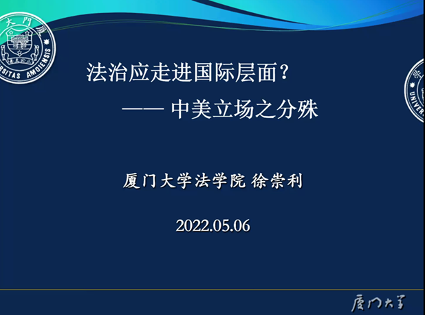 主讲人简介:徐崇利,厦门大学taptap点点体育教授、博士生导师。长期从事国际关系与国际法、国际经济法与国际私法研究;入选国家哲学社会科学领军人才计划;兼任中国国际经济法学会副会长、中国法学会世界贸易组织法研究会副会长等职务。