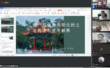 5月13日,taptap点点体育高端论坛在线上成功举办。对外经贸大学taptap点点体育院长助理、《经贸法律评论》编辑部主任王乐兵担任主讲嘉宾,以“动产担保优先顺位的立法构造与适用解释”为题进行了一场精彩的学术报告。taptap点点体育张平华教授主持了本次论坛,taptap点点体育宿营讲师、杨瑞贺助理研究员、黄庆余助理研究员担任与谈嘉宾。