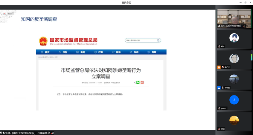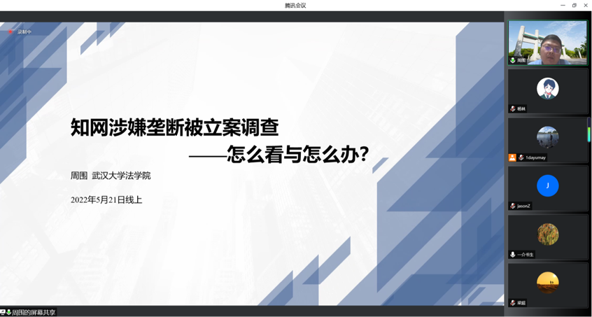 周围副教授以“知网涉嫌垄断被调查立案——怎么办与怎么看?”为题展开讲述。周围副教授首先从反垄断法和知识产权两个维度梳理了不公平高价及其影响。其次,关于知网案的理论猜想,周围副教授强调知网与大量期刊、高校签订独家协议,限制它们与其他第三方学术文献数据库服务平台合作,人为制造知识流动壁垒,影响市场竞争秩序。同时,知网通过低价收录、高价出售的方式获取超高利润,在缺乏正当理由的情况下,连续多年大幅提高数据库价格,增加了消费者的负担。再次,周围副教授以现有不公平高价案件为例,介绍了常见的四种判断不公平高价的方法,并结合我国的法律实践总结出我国涉及不公平高价的反垄断执法案件总体特征。最后,周围副教授从明确数据库平台的企业性质和救济措施两个方面提出了知网案的未来设想。