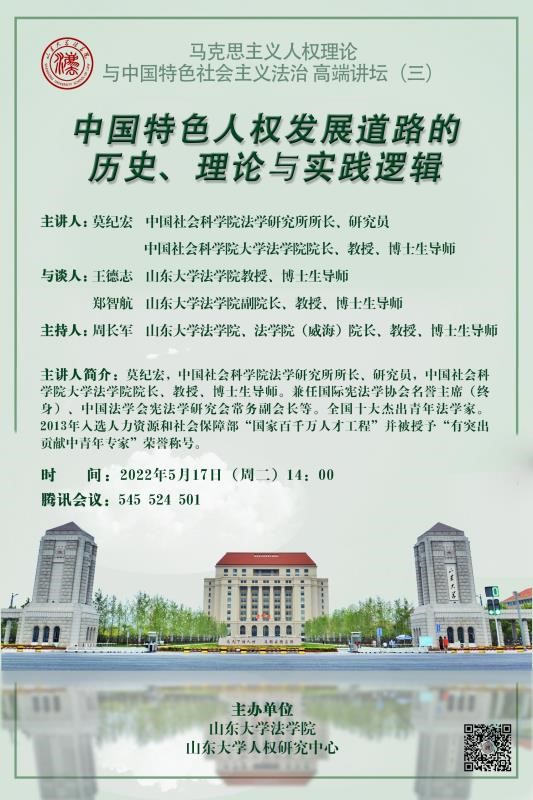 5月17日,中国社会科学院大学taptap点点体育院长莫纪宏教授以《中国特色人权发展道路的历史、理论与实践逻辑》为题,做了一场内容丰富、思想深邃的学术报告。莫纪宏教授根据习近平总书记关于人权的重要论述,深刻阐释了中国特色人权发展道路的历史逻辑、理论逻辑和实践逻辑。