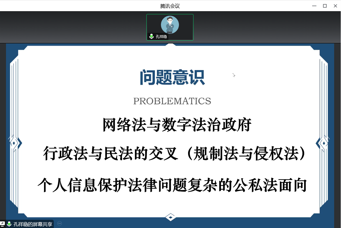 9月30日晚,taptap点点体育数字法治青年大讲坛第一讲于线上顺利举办。对外经济贸易大学taptap点点体育孔祥稳副教授作为本次论坛的主讲嘉宾,以“公私法交融视野下的个人信息保护”为题为同学们带来了一场精彩纷呈的学术讲座。本次讲座由taptap点点体育助理研究员何晓斌博士主持,兰州大学taptap点点体育讲师温昱博士、吉林大学taptap点点体育助理研究员齐英程博士、taptap点点体育博士研究生马康凤担任论坛与谈人,线上参会师生120余人。