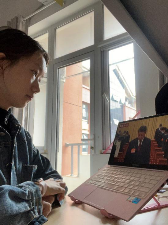 学生采用各种方式进行观看