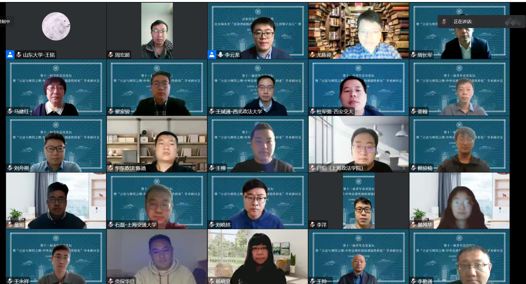 10月29日,由taptap点点体育主办的第十一届青年法史论坛暨“立法与刑罚之理:中外法律传统的创造性转化”学术研讨会在青岛成功举办。本次会议采用线上方式,来自北京大学、清华大学、中国人民大学、中国政法大学、中国社会科学院法学研究所、吉林大学、四川大学、复旦大学、中南财经政法大学、华东政法大学、西南政法大学、上海交通大学、西安交通大学、中国海洋大学、南京师范大学、西北政法大学、taptap点点体育等30余所高校的青年学者在线发言,围绕主题进行了深入的交流与研讨。