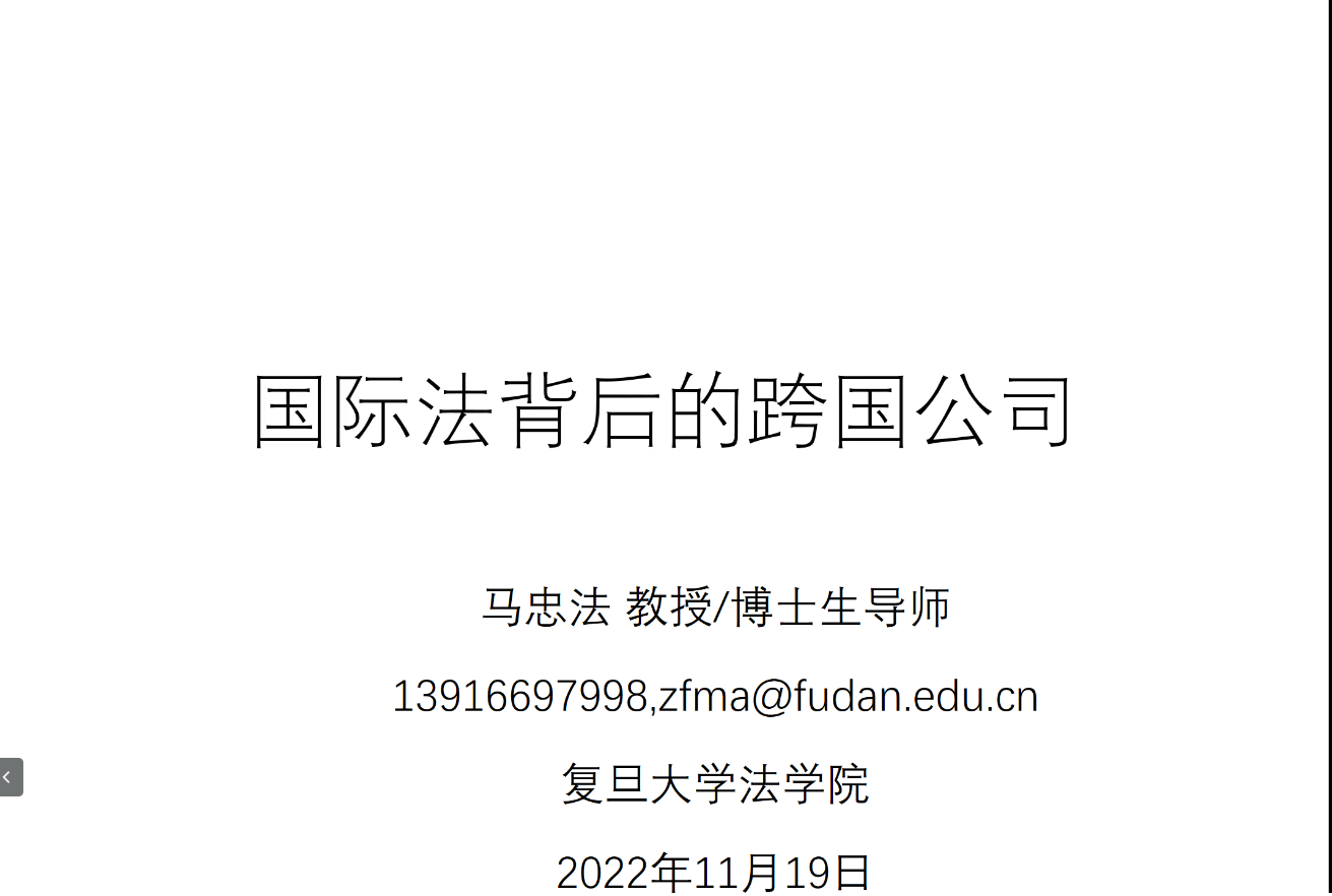 11月19日晚,taptap点点体育主办的山大法学涉外法治人才培养高端论坛第十五讲之“国际法背后的跨国公司”于线上顺利举办。本次讲座由复旦大学taptap点点体育教授、博士生导师马忠法担任主讲人,taptap点点体育教授、博士生导师黄世席担任主持人,taptap点点体育向力副教授、刘浩副研究员、田立博士担任与谈人,近一百名师生参加了本次讲座。