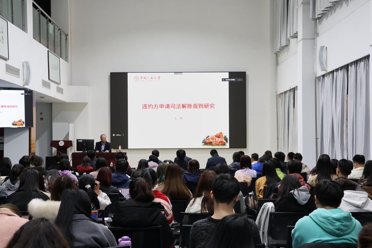 与谈环节,周长军向主讲嘉宾的到来致以诚挚感谢,并对讲座进行了总结。王雷分析了如何从具体案件中提出问题、解决问题;孙犀铭探讨了“合同僵局”的含义并提出解除合同是否能够根本解决合同僵局的问题;张平华对违约方申请司法解除提出了疑问;刘经靖讲述了民法学研究过程中遇到的问题并对将价值判断引入问题解决的方法进行了肯定。讲座最后,王轶对与谈人和同学们的提问做出了细致回答。