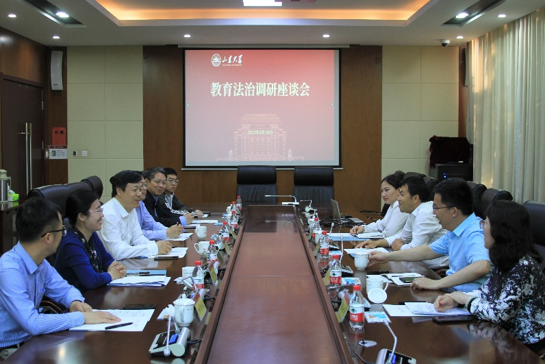 5月18日下午,山东省教育厅政策法规处(行政许可处)处长夏贞鹏等一行4人,就教育法治工作来我院进行调研座谈。taptap点点体育党委书记于向明,taptap点点体育院长、taptap点点体育(威海)院长周长军,taptap点点体育法律事务办公室主任邝璐,taptap点点体育教授、宪法行政法研究所所长王德志,taptap点点体育助理研究员何晓斌,taptap点点体育2021级硕士研究生杨小超等人参加调研座谈。座谈会由周长军主持。