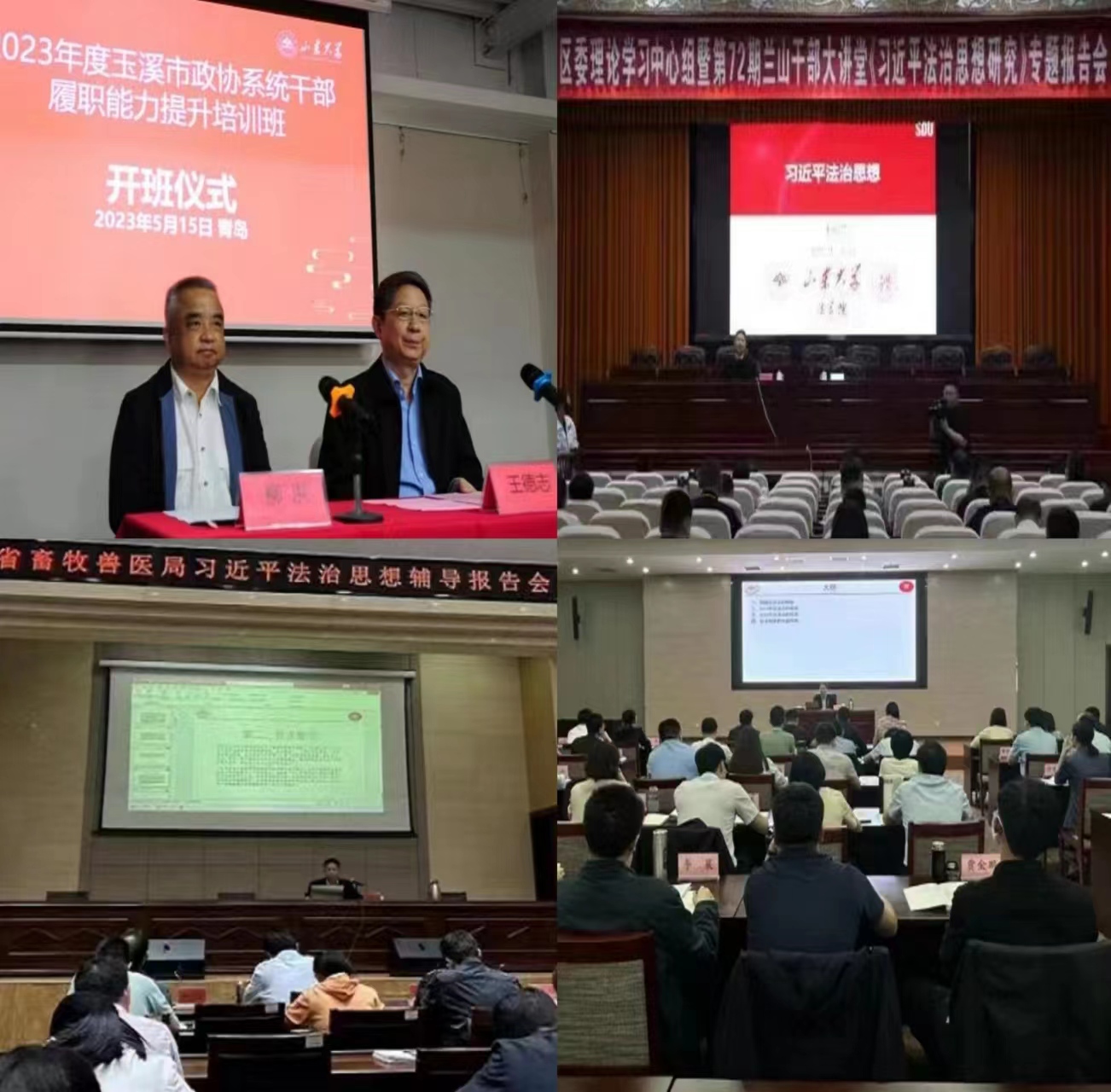 习近平法治思想研究中心自去年9月成立以来,在谢鹏程教授的带领下在多个方面深入开展研究工作,并承担了全校本硕阶段《习近平法治思想概论》的全部教学工作以及对外的主要宣讲工作。主题教育活动开展以来,中心多位研究员在校内外进行习近平法治思想宣讲。如5月13日,谢鹏程教授在taptap点点体育主题教育读书班第三次集中学习上做辅导报告;王德志教授5月16日为玉溪市政协系统干部做了题为《党的二十大报告精神解读:发展全过程人民民主,保障人民当家作主》的报告,5月23日、28日,5月30日三次为党政机关干部做习近平法治思想和立法辅导报告。中心目前已经形成了从法理学、宪法学、人权法学、数据法学以及部门法学等多个视角对习近平法治思想进行研究的研究特色,并取得了丰硕成果。