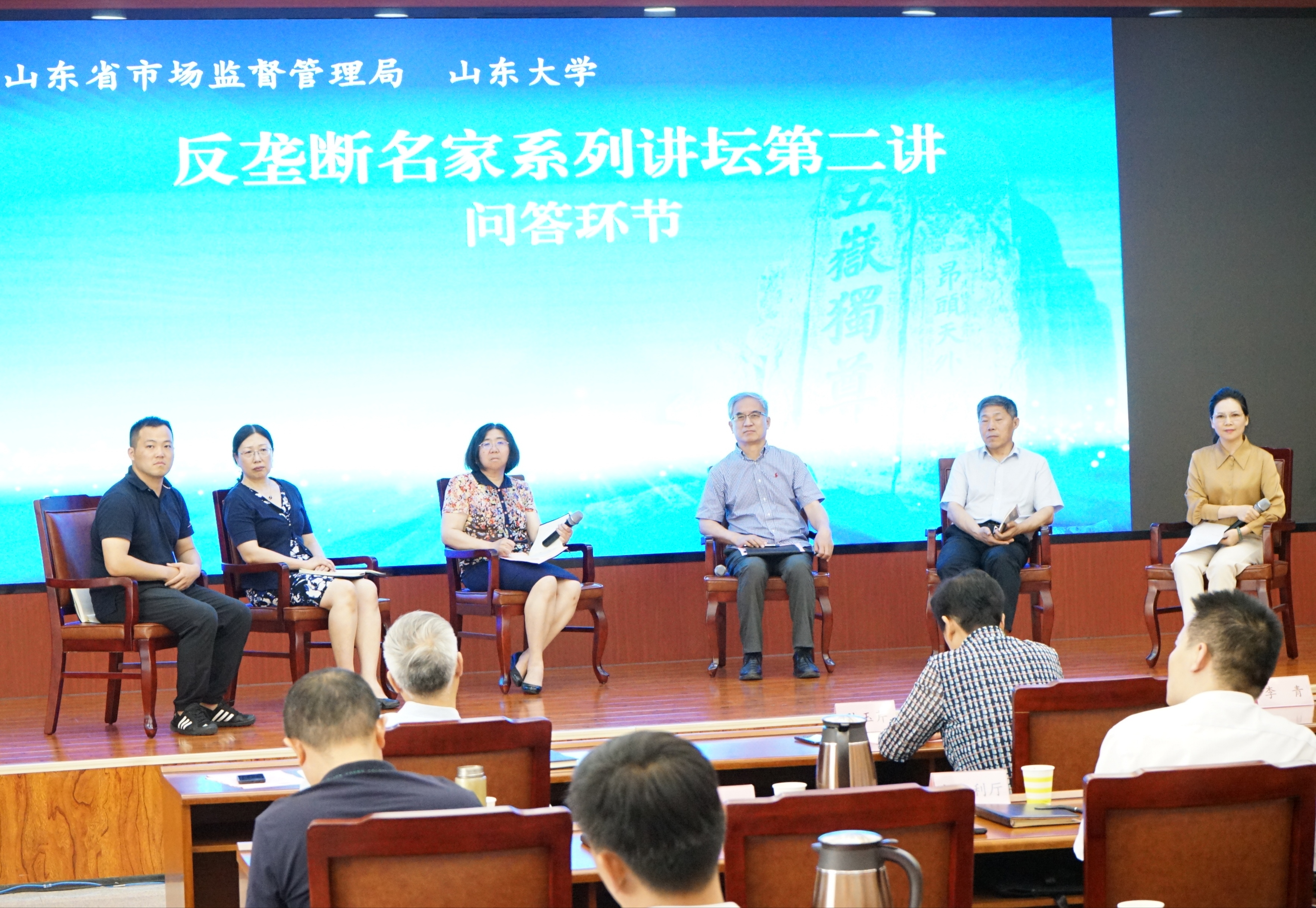 在问答环节,山东省市场监督管理局、山东省司法厅等部门的工作人员就竞争政策的发展方向、产业政策与竞争政策之间的关系、公平竞争的审查标准等提问,李青、林平和叶高芬分别作答,和与会嘉宾进行了深入的互动。