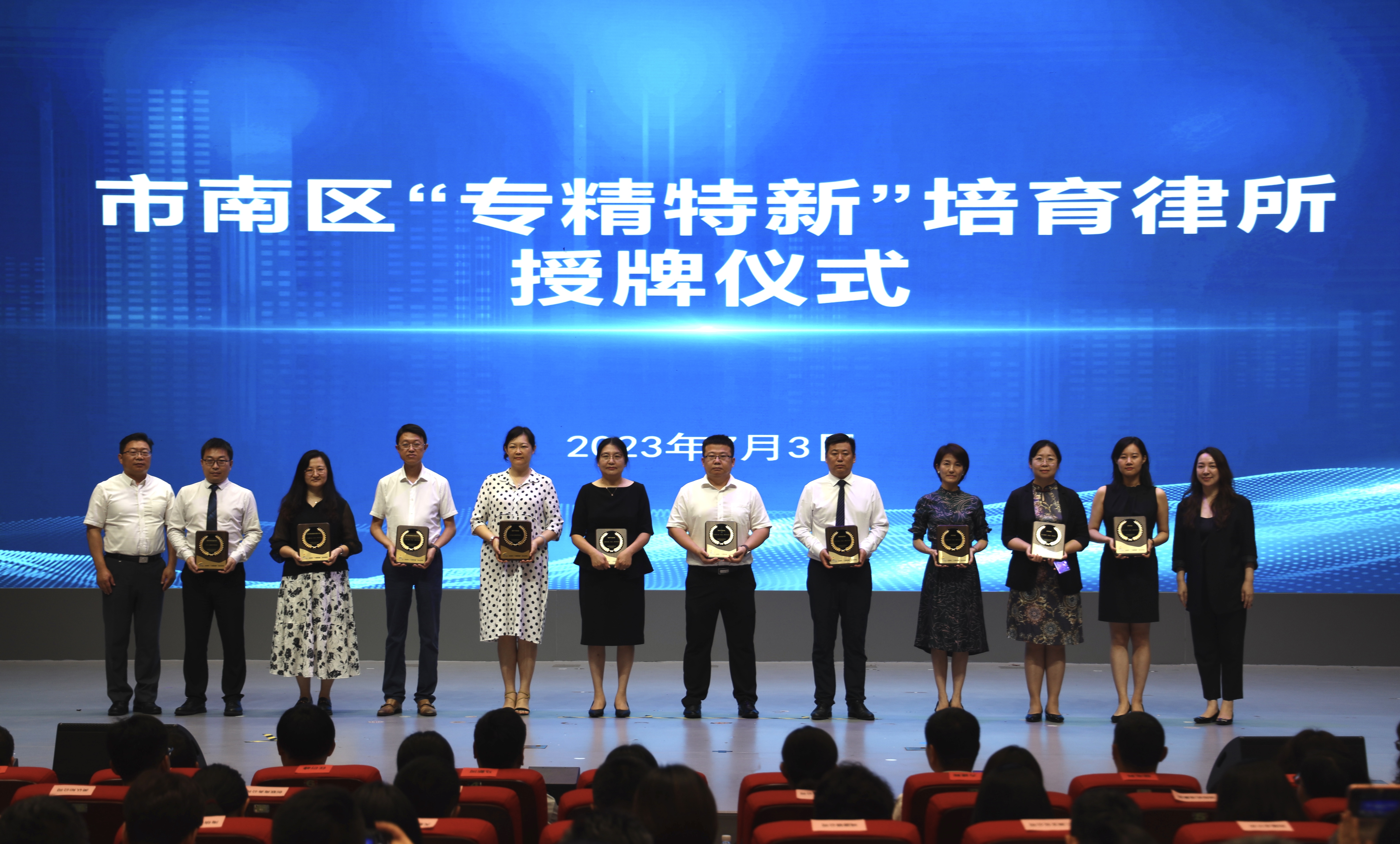 为全面贯彻新发展理念,引导律师事务所激活成长型、创新型特质,不断提升专业服务能力和竞争力,推动市南区律师行业高质量发展,青岛市市南区于7月3日召开“专精特新”培育律所发布会。青岛市司法局党委委员、副局长刘春颖,市南区区委常委、政法委书记王东,市南区政府副区长、市南公安分局党委书记、局长方建辉,市、区司法局和区律协相关领导,“专精特新”评审组专家以及来自相关部门、律师事务所和企业的代表出席本次会议。会议为获评的律所举行了授牌仪式,11家“专精特新”律所就各自法律服务产品开展了路演。