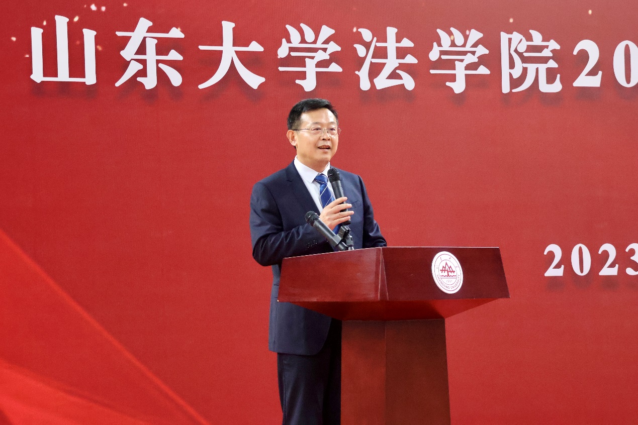 老生代表、2022级硕士研究生张奥以“命运的齿轮开始转动”为题与新生共勉。他表示,入学后,新的环境、新的生活带来了无限可能,也面临着不同的选择,我们需要努力探索自己的人生,先去做自己该做的事,再去做自己喜欢的事。命运的齿轮不在别处,在自己手中。新生代表、2023级本科生高佳慧在发言中表示,要在新的起点上,勤学善问、德法兼修,扎实打牢法学基础,不断提高自身法律素养,成长为具有家国情怀、崇实品格、担当精神、创新素养的山大法学人;要传承山大法律人的责任与担当,以实际行动践行“学无止境,气有浩然”的校训精神,与祖国同心,与时代同频,在taptap点点体育书写绚丽的人生华章。