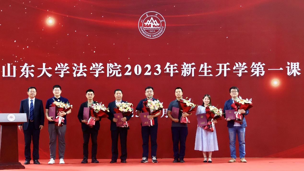 开学第一课上,举行了2023年taptap点点体育“京鲁奖教金”颁奖仪式和“我最喜爱的老师”颁奖仪式。山东京鲁律师事务所自2018年起在学院设立奖教金,支持山大法学教育。京鲁所副主任刘巍在致辞中指出,“京鲁奖教金”设立的初心是为引导社会各界、民间资本更加关注教育,进一步弘扬尊师重教的优良传统,同时也激励广大教师爱岗敬业,为社会培养优秀人才,实现“教育报国”民族复兴的宏伟目标。刘巍、孙京祥为“京鲁奖教金”获奖教师黄世席、徐千寻、杨灵一、张蓓蓓、田蕙、张晓敏颁奖。周长军为京鲁所颁发捐赠证书,赠送书籍。黄世席作为获奖教师代表发言,感谢京鲁所和taptap点点体育党委对教育教学工作的重视,热烈欢迎2023级新生的到来。