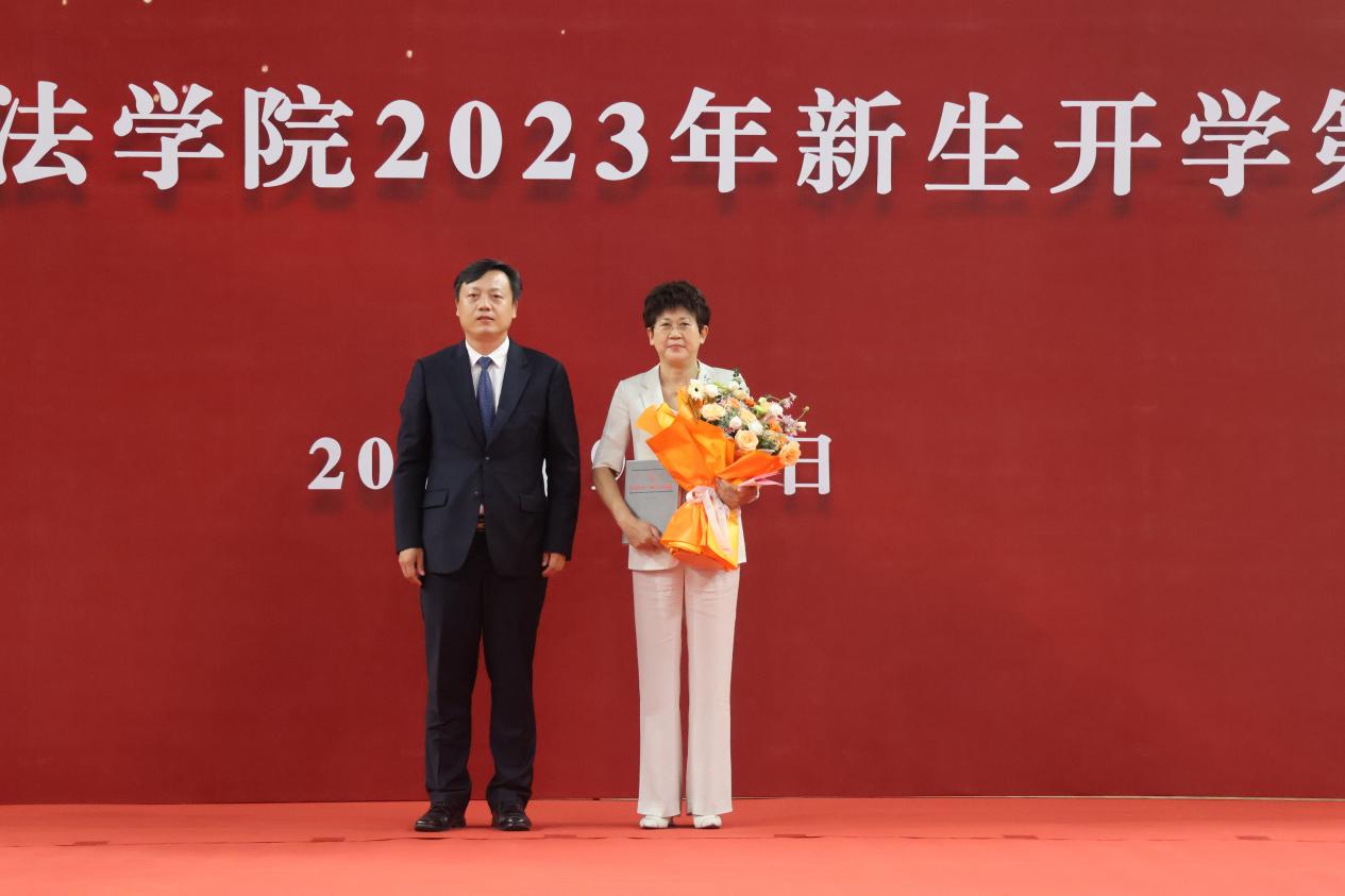 taptap点点体育1988级本科生、山东鸢都英合律师事务所主任高明芹作为优秀校友代表致辞。她向新生讲述了三十五年前在taptap点点体育度过的大学时光,回望了自己从学生成长为律师的心路历程。她以拳拳之心寄语新生:一是不忘初心、牢记法律人的职责使命,维护公平正义,推进法律实施与法治进步。二是努力学习,珍惜人生的黄金季节,多读书、读好书,做一名学识渊博的法律人。三是塑造法律人独有的职业品格,做大写的人,树牢公平正义的理念,做道德底线的坚守者。高明芹祝愿2023级新生学有所成,早日成为国家的栋梁之才;坚持追求知识与公正,永不松懈。周长军向高明芹赠送《我们这四十年——taptap点点体育院史》图书。