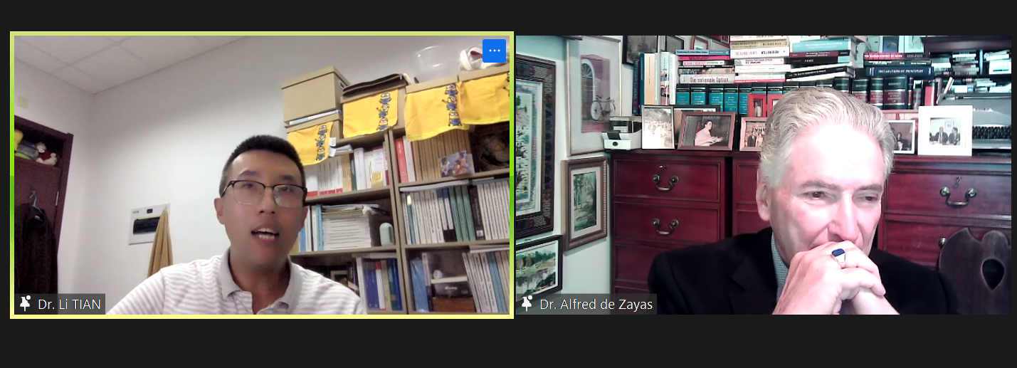 田立的发言得到de Zayas的赞赏。发言结束后,二人又在讨论环节就若干国际人权法的相关议题进行了深入交流。