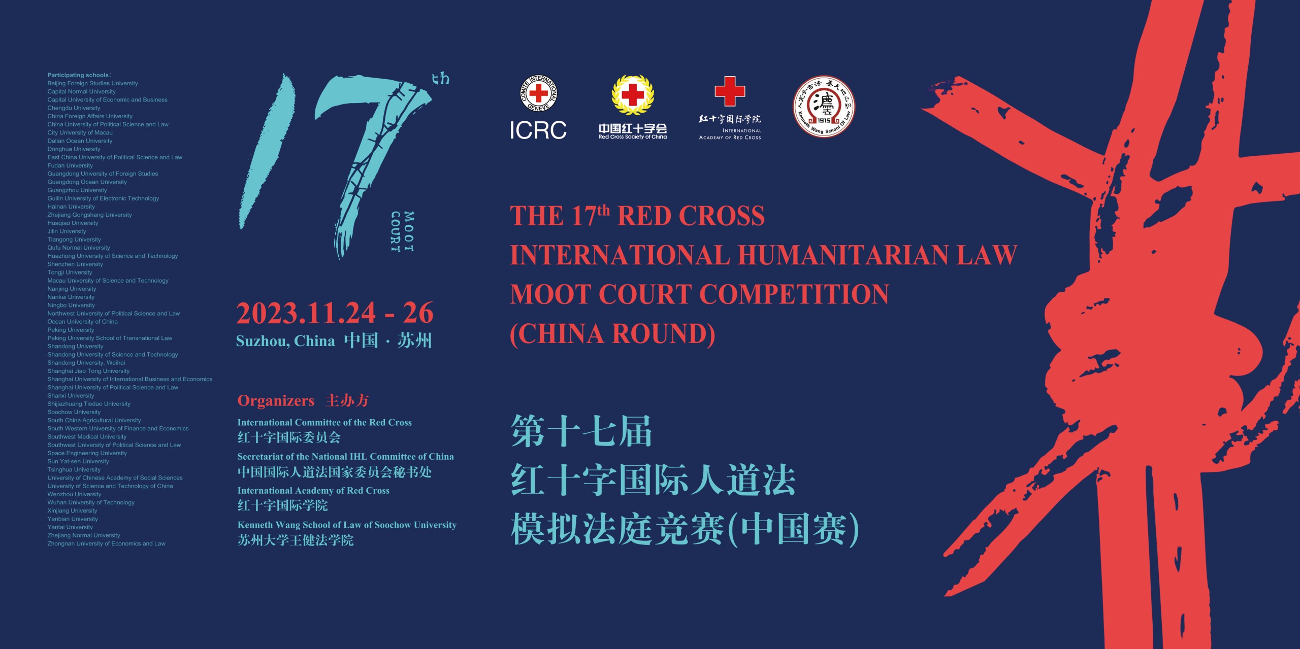 国际人道法是国际公法的分支之一,由国际条约或习惯规则(即源自国家实践和法律确信的规则)组成,旨在解决因国际性或非国际性武装冲突而直接引发的人道问题。中国大陆地区红十字国际人道法(IHL)模拟法庭竞赛肇始于2007年,是大陆地区最早和最具影响力的全英文国际模拟法庭竞赛之一。该赛事从书面文本到口头表达采取全英文方式进行,旨在通过国际人道法议题的模拟庭审,提高法科学子对国际人道法问题的认识。参与学生直接接触国际人道法热点问题,深入了解国际刑法与国际人道法在实践中的应用,提高自身在案件事实分析、法律规范检索和法律文书写作方面的能力。