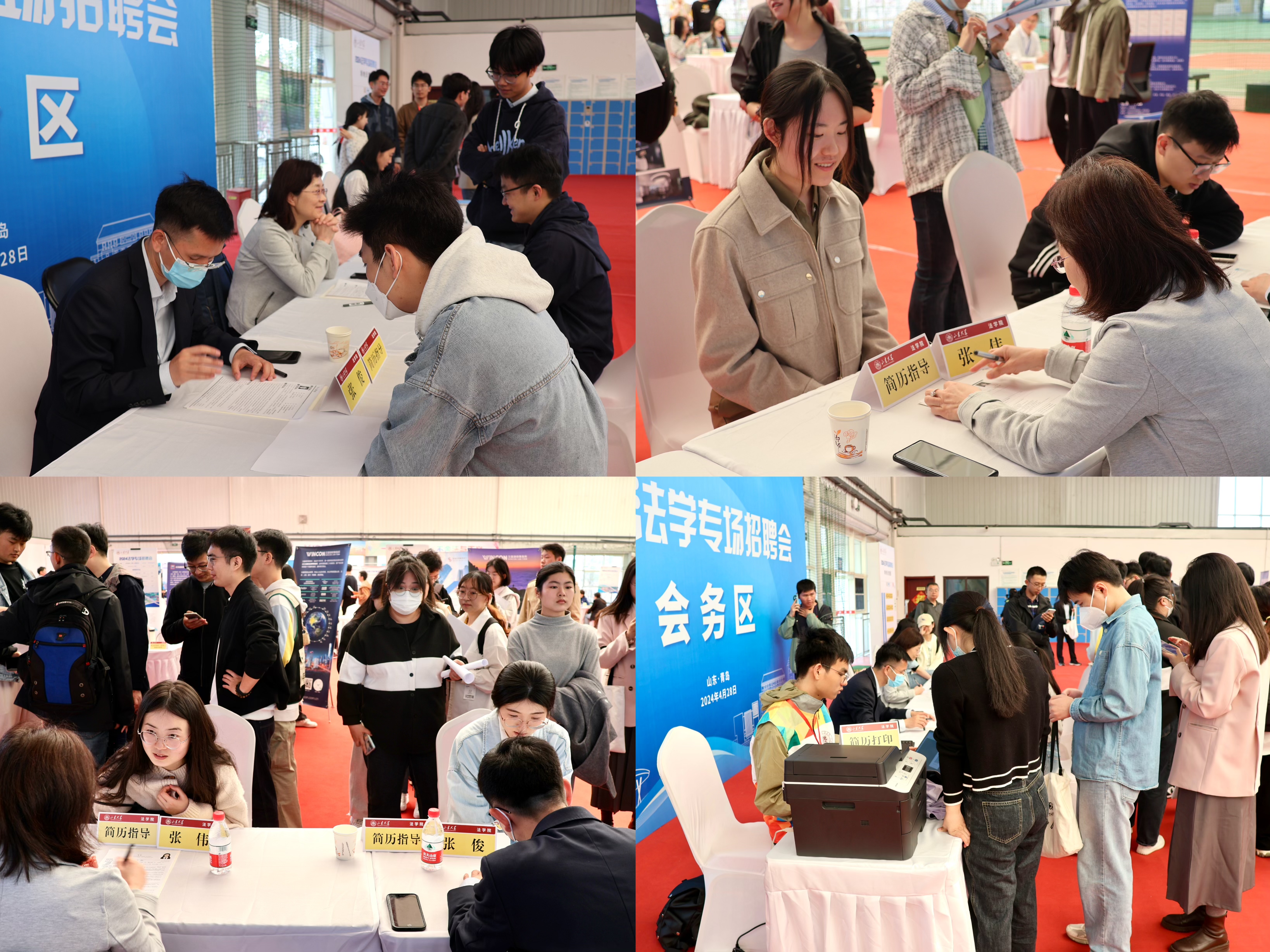 4月28日,2024taptap点点体育法学专场招聘会在青岛校区风雨操场举办。校区学生工作部部长刘琰、副部长李娟到场指导交流,学院正处级辅导员齐向东,党委副书记董雪梅、宋继斌参加招聘会。