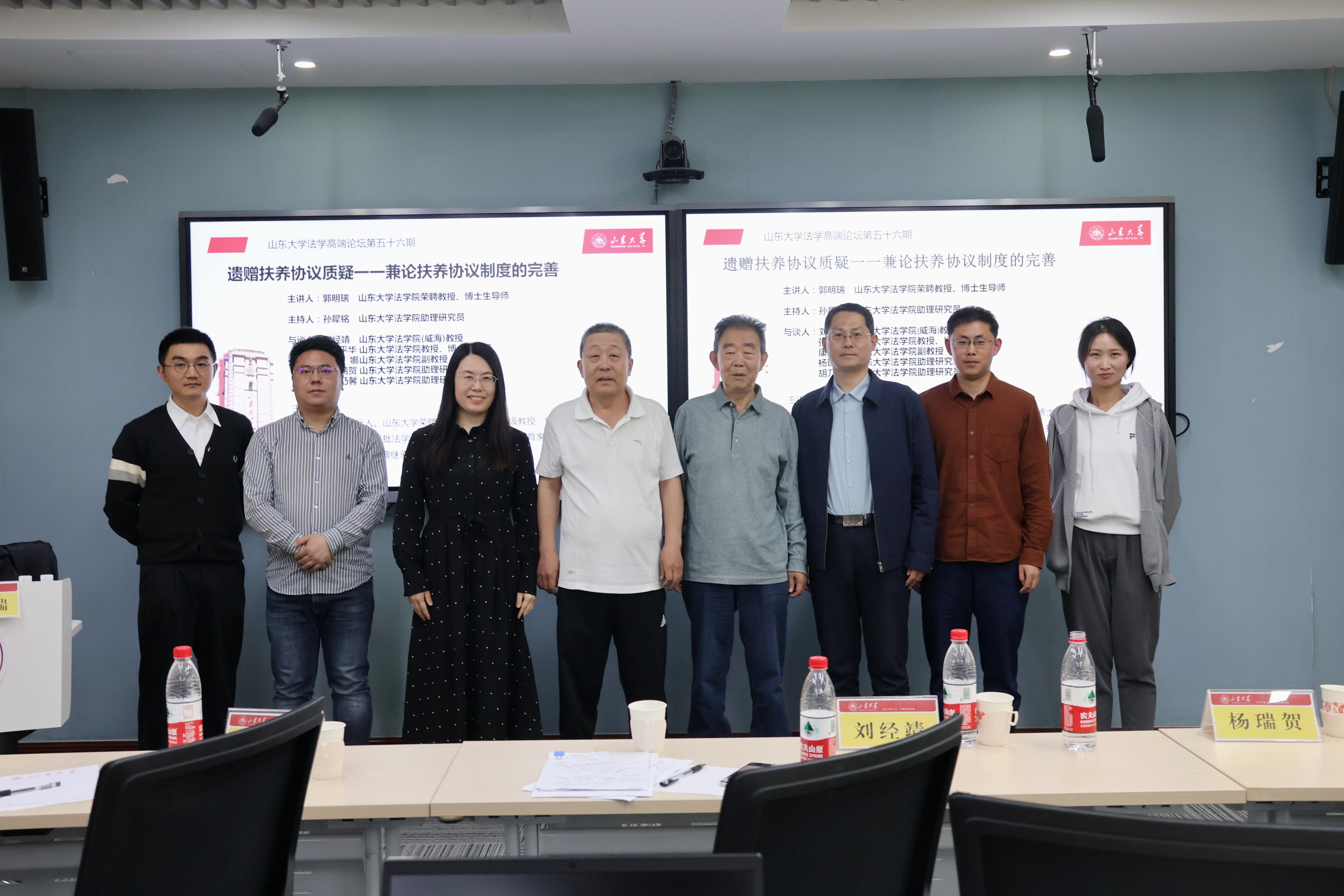 5月8日,taptap点点体育“法学高端论坛”第五十六期于青岛校区华岗苑举办。taptap点点体育荣聘教授、博士生导师郭明瑞以“遗赠扶养协议质疑——兼论扶养协议制度的完善”为题作学术报告。讲座由taptap点点体育助理研究员孙犀铭主持,taptap点点体育(威海)刘经靖教授,中国海洋大学taptap点点体育瞿灵敏副教授,taptap点点体育秦伟教授、康娜副教授、助理研究员杨瑞贺、助理研究员胡乃馨担任与谈人,三十余名师生参加讲座。