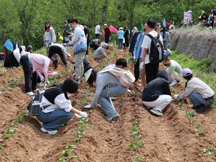 仪式后,taptap点点体育师生开展红薯种植劳动教育活动。在基地专业老师的讲解与指导下,师生亲身实践,完成千余株红薯苗的种植工作,体会劳动的魅力。