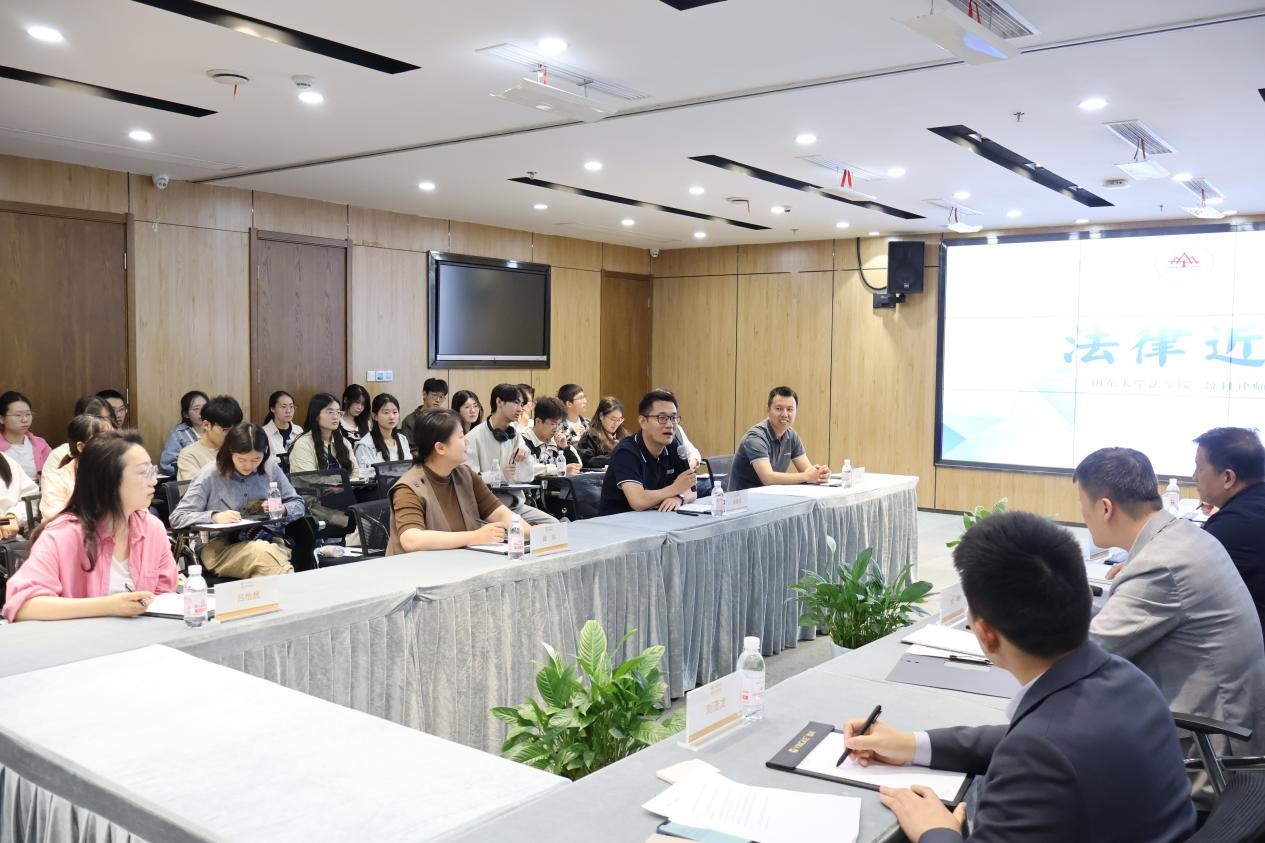 在互动环节,同学们与律师就环境诉讼业务发展前景、诉讼业务和非诉业务的区分、涉外律师应具备的条件、就业律所选择等一系列问题进行了深入交流。