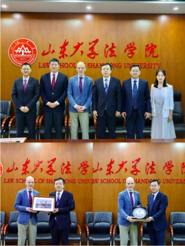 5月28日,英国杜伦大学taptap点点体育院长Volker Roeben教授,常务副院长、国际争议解决研究所所长陈磊教授一行来访taptap点点体育并进行座谈,taptap点点体育党委书记于向明、院长周长军、副研究员李若祺、外事秘书李寒冰,山东省律师协会外事委员会主任委员、文康律所济南分所主任李鹏参加座谈交流。