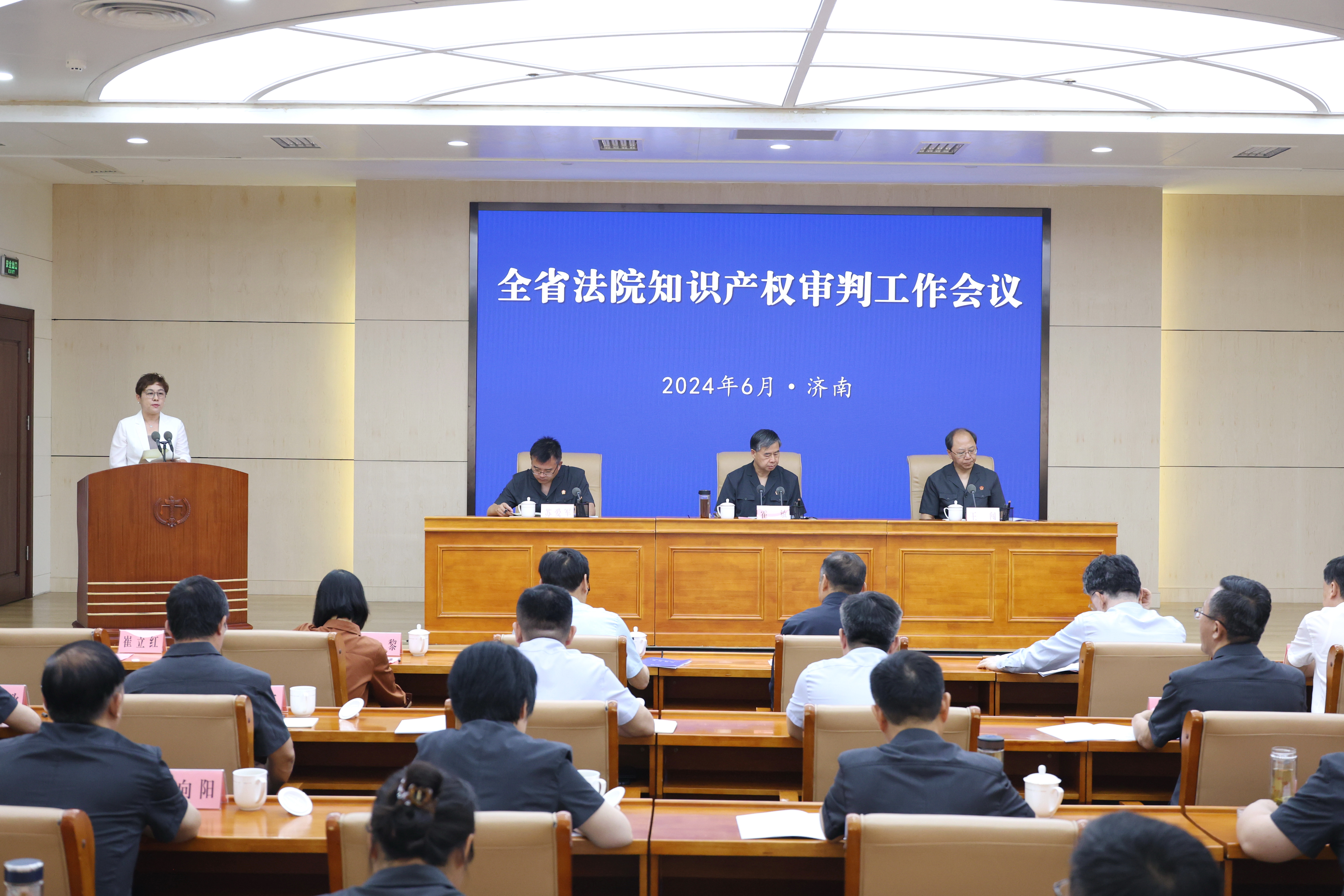 山东省高级人民法院党组书记、院长霍敏出席会议并讲话,党组副书记、副院长王闯主持会议。全国人大代表、全国政协委员、专家学者、省直有关部门负责同志,各市中级法院分管领导和庭长、济南、青岛知识产权法庭等,部分新闻媒体代表在主会场和视频参会。