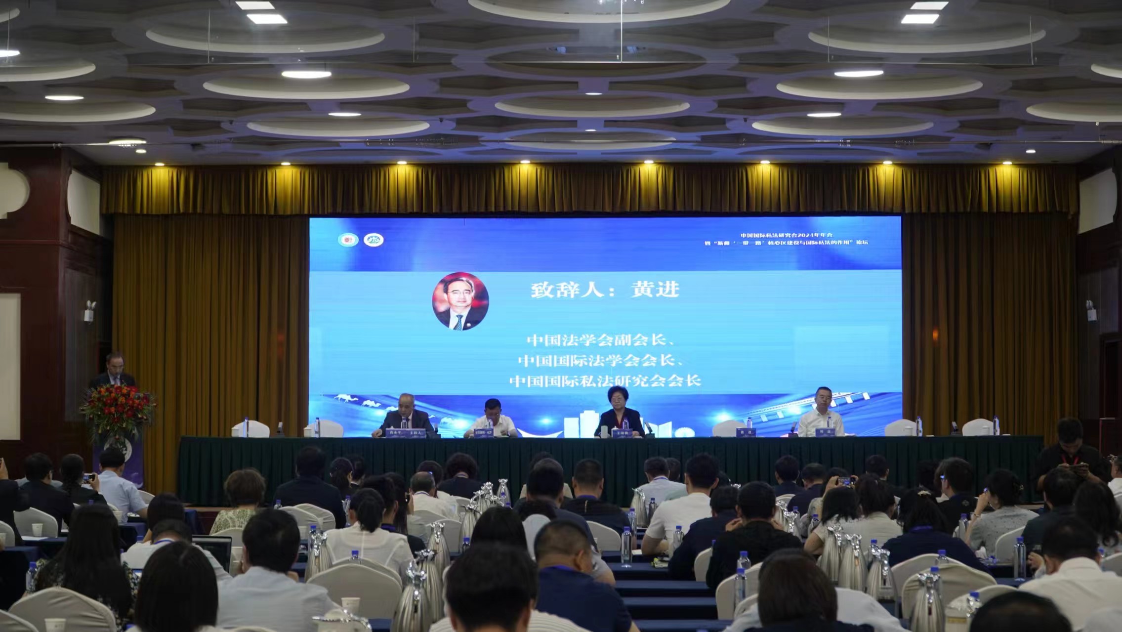 武汉大学人文社科资深教授、中国国际私法研究会常务副会长肖永平主持开幕式,最高人民法院审判委员会副部级专职委员王淑梅、喀什地区行署副秘书长刘忠、喀什大学党委副书记、校长买买提明·木沙、中国法学会副会长、中国国际法学会会长、中国国际私法研究会会长黄进出席开幕式并致辞。最高人民法院民四庭庭长沈红雨、外交部条约法律司胡镔参赞、海牙国际私法会议亚太区域办事处代表、香港大学法律学院副院长赵云出席大会并作主题报告。