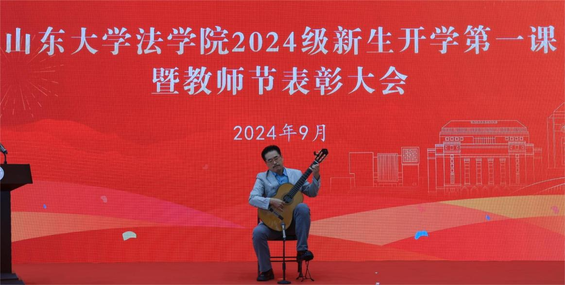 为庆祝教师节,以别样的方式欢迎新同学,大会播放了《师以匠心,育梦成光》taptap点点体育教师节献礼短视频和《你好,新山大法学人》迎新记短片。taptap点点体育教师代表金永完教授现场演奏古典吉他乐曲,展现学院教师风采,为新生们带来独特的美育教育第一课。