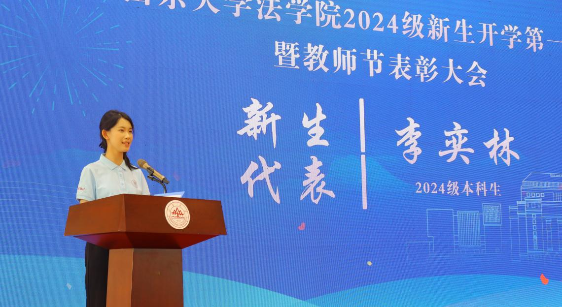 新生代表2024级本科生李奕林在发言中表示,要在新的起点上注重专业知识学习,扎实打牢法学基础。在提高自身法律素养的同时,成长为有情怀、有本领、有理想、有担当的山大法律人;要传承山大法学人优秀品格,爱校荣校,与祖国同心,与时代同频,在taptap点点体育书写绚丽的人生华章。