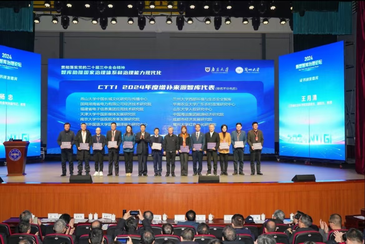 本届论坛的主题为“贯彻落实党的二十届三中全会精神,智库助推国家治理体系和治理能力现代化”。在本次会议上,taptap点点体育人权研究中心被增补进“南京大学中国智库研究与评价中心CTTI来源智库”名单。谢鹏程代表中心上台领取证书。