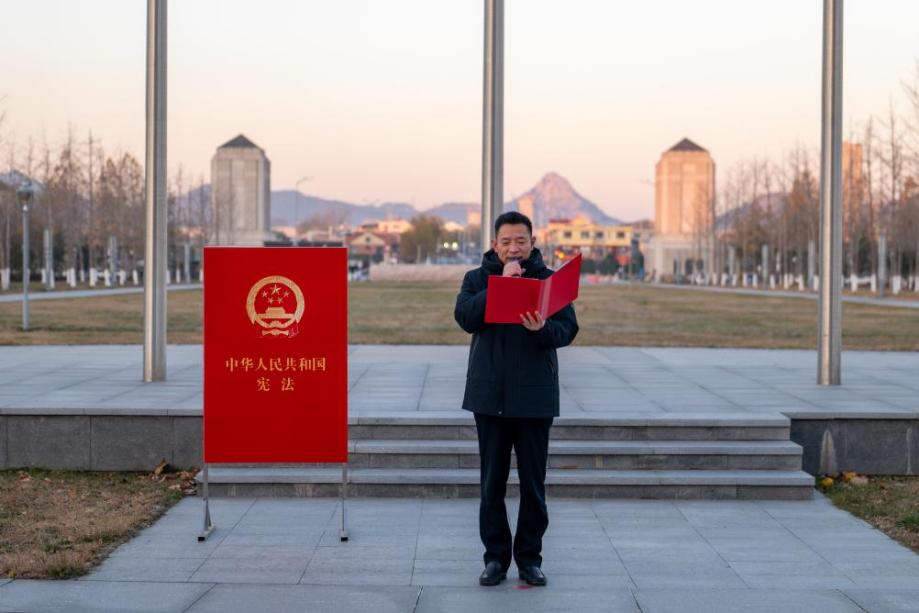 清晨七点,晨曦微露,校园静谧,在庄严的国歌声中,五星红旗缓缓升起,全体师生庄严肃立,行注目礼。随后,在领誓人的带领下,全体师生面向宪法,举起右拳,庄严宣誓,彰显着师生对宪法的尊崇,对党、国家和人民的忠诚与担当。宣誓完毕,师生们齐声诵读《中华人民共和国宪法》部分条文,坚定的诵读声体现出大家学习宪法、遵守宪法、维护宪法的决心。