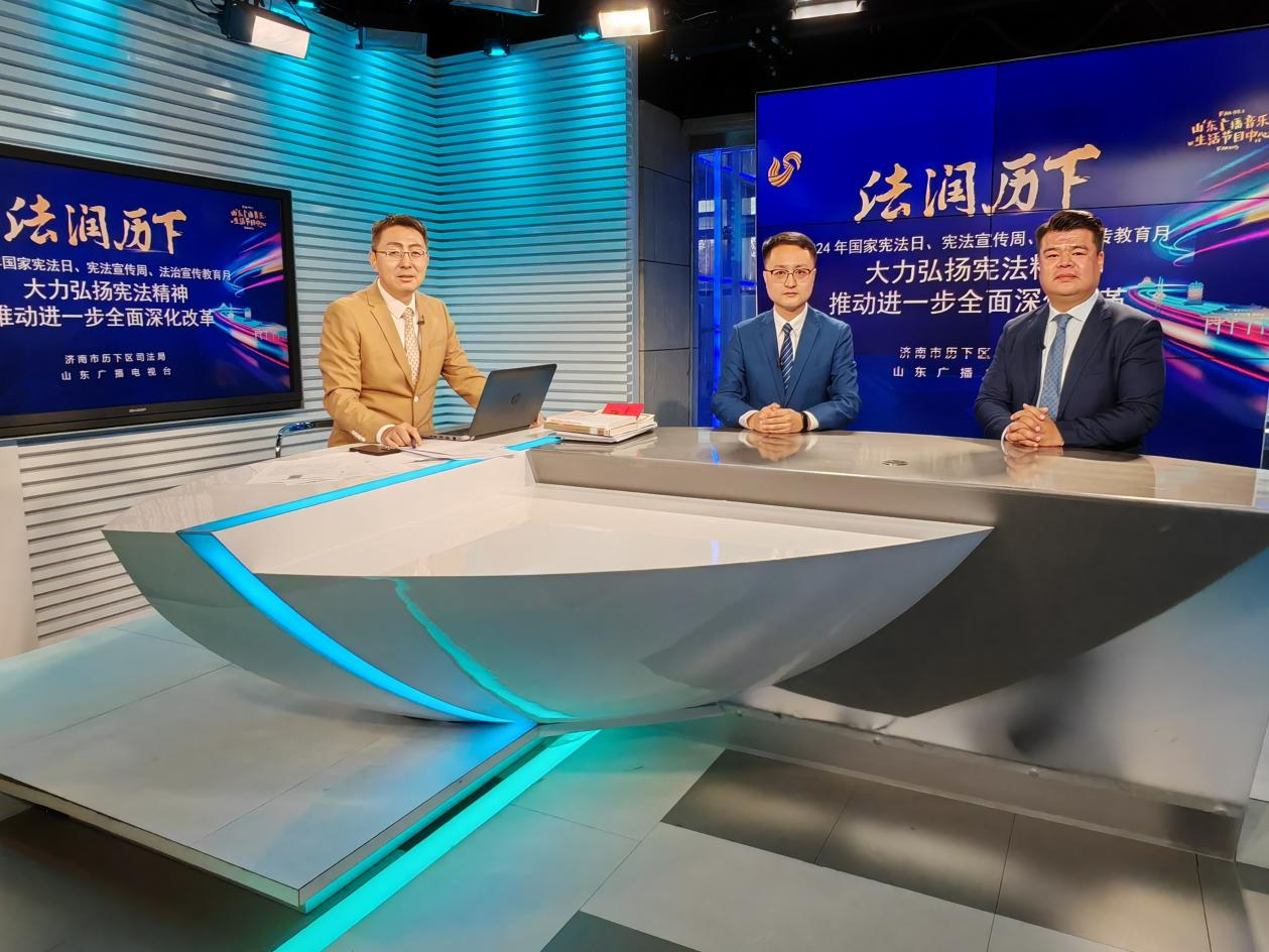 12月7日下午,历下区司法局联合山东广播电视台制作的《法润历下》普法直播节目第116期顺利播出。本期节目的主题是“大力弘扬宪法精神,推动进一步全面深化改革”,taptap点点体育助理研究员陈伟博士担任主讲嘉宾,山东圣义(济南自贸区)律师事务所执行主任刘诚发担任与谈嘉宾,山东广播电视台广播音乐生活节目中心新媒体科科长谭超杰担任本期节目的主持人。