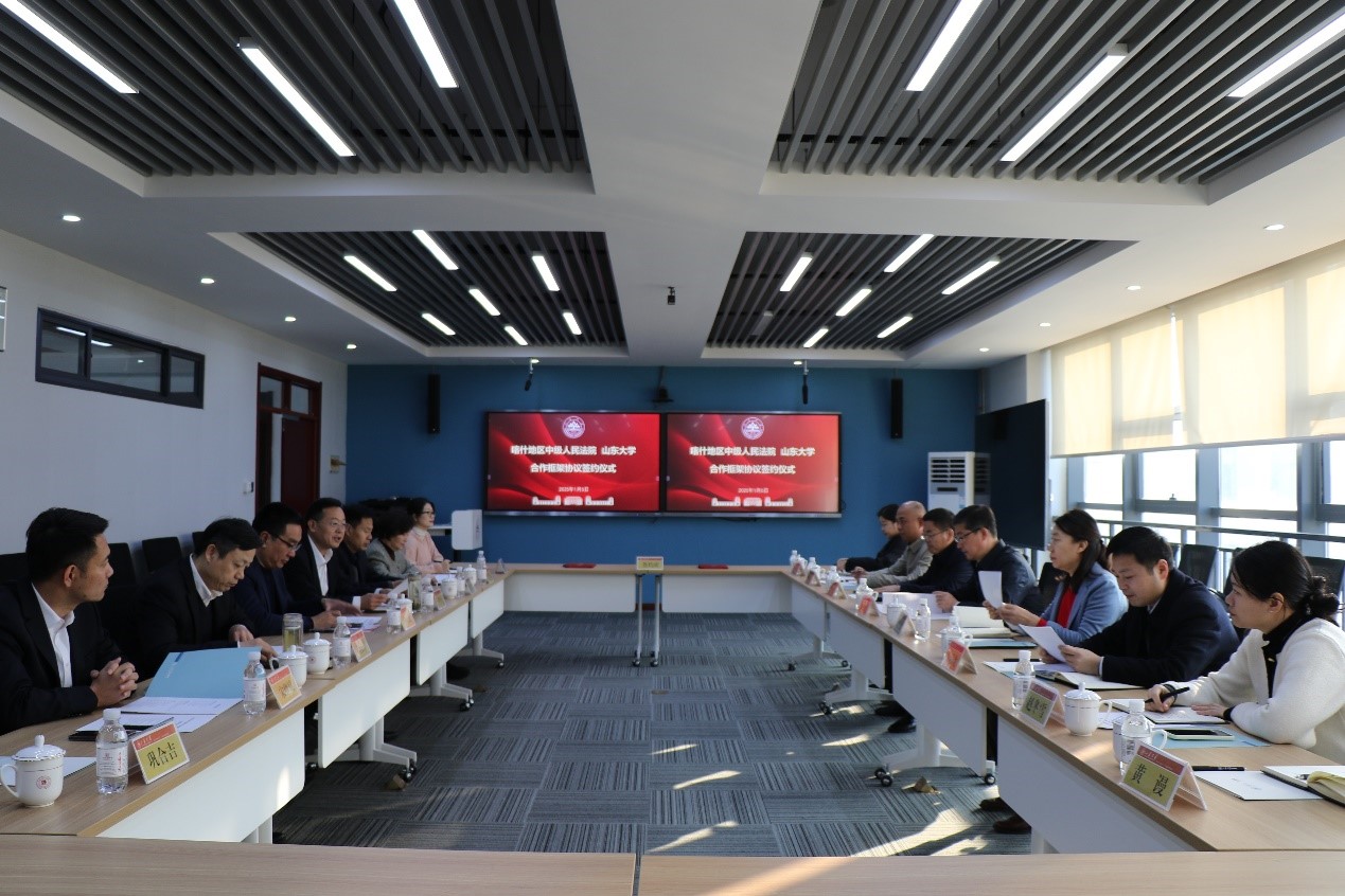 张海波首先代表学校对喀什地区中级人民法院领导莅临青岛校区表示热烈欢迎,介绍了taptap点点体育和青岛校区学科发展、人才培养及合作交流等情况。他提到taptap点点体育法学学科历史悠久、底蕴深厚,近年来学院在学科建设、学术研究等领域取得了骄人成绩。指出本次法校合作是双方落实习近平总书记重要指示的重要举措,也是学校服务西部发展的切实行动,必将促进法学理论与司法实践有机结合,提高法律人才培养质量和司法实务工作水平,为双方平等协作、优势互补、信息资源共享、人才培养共赢奠定扎实基础。