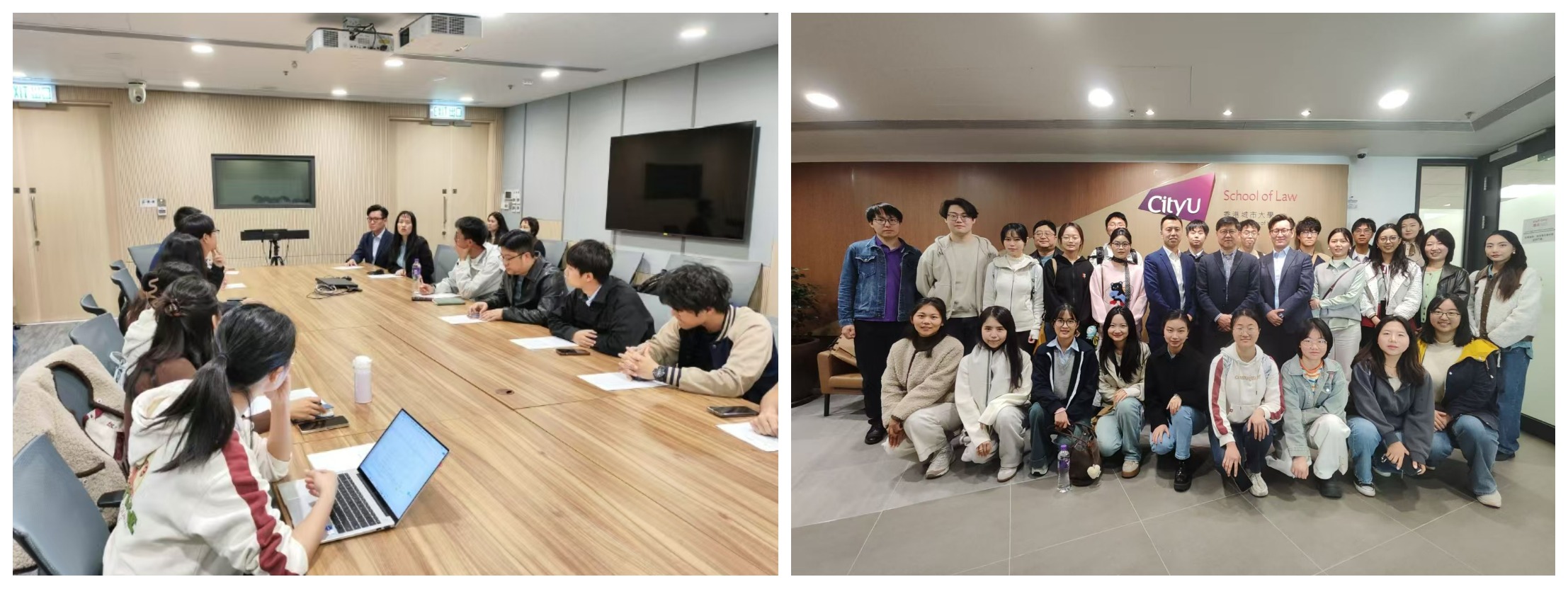 1月21日上午,游学团成员走进香港城市大学的校园。座谈会上,香港城市大学法律学院副院长丁春艳教授介绍了学校及学院概况、师资力量、教学体制,何天翔教授和朱国斌教授分别就硕士(LLM和JD)、博士(PhD)项目展开详细介绍,与会的李泽明等数位香港城市大学博士生和硕士生向同学们分享了学习生活情况。座谈会结束后,游学团成员参观了香港城市大学正在展出的跨文化礼仪兵器艺术展,领略了不同文化背景下艺术品的独特魅力。