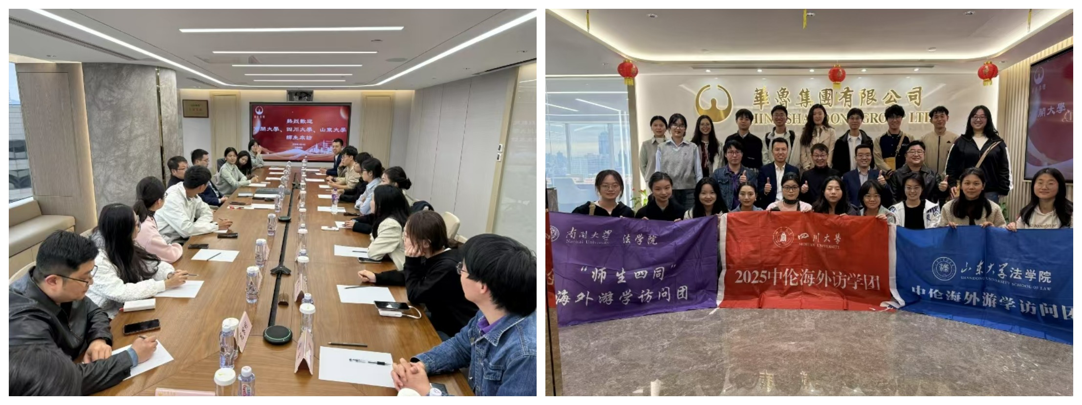 1月21日下午,游学团成员来到了本次游学的最后一站——华鲁集团,受到了华鲁集团副总经理张会永和赵敬国的盛情接待。华鲁集团于1985年10月在香港注册成立,是山东省在海外设立的首家独资公司,聚焦于高端化工、生物医药、生态环保三大业务板块。通过与两位前辈的深入交流,同学们对于企业发展的核心竞争力、文化底蕴和底层逻辑的重要性有了深入的了解,同时也对未来职业规划和专业素养提升有了更加明确的目标。