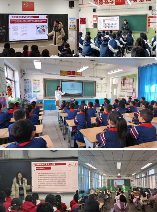 共创和谐校园,守望青春未来,团队重点针对中小学生群体进行校园法治宣传。以杜绝校园霸凌为主题,向同学们传递“坚决不做施暴者”和“避免成为受害者”的法治理念及维权方式。此外,宣讲成员还就中小学生消费者权益保护的特殊性问题进行了专门讲解。大手拉小手,呵护幼苗茁壮成长。